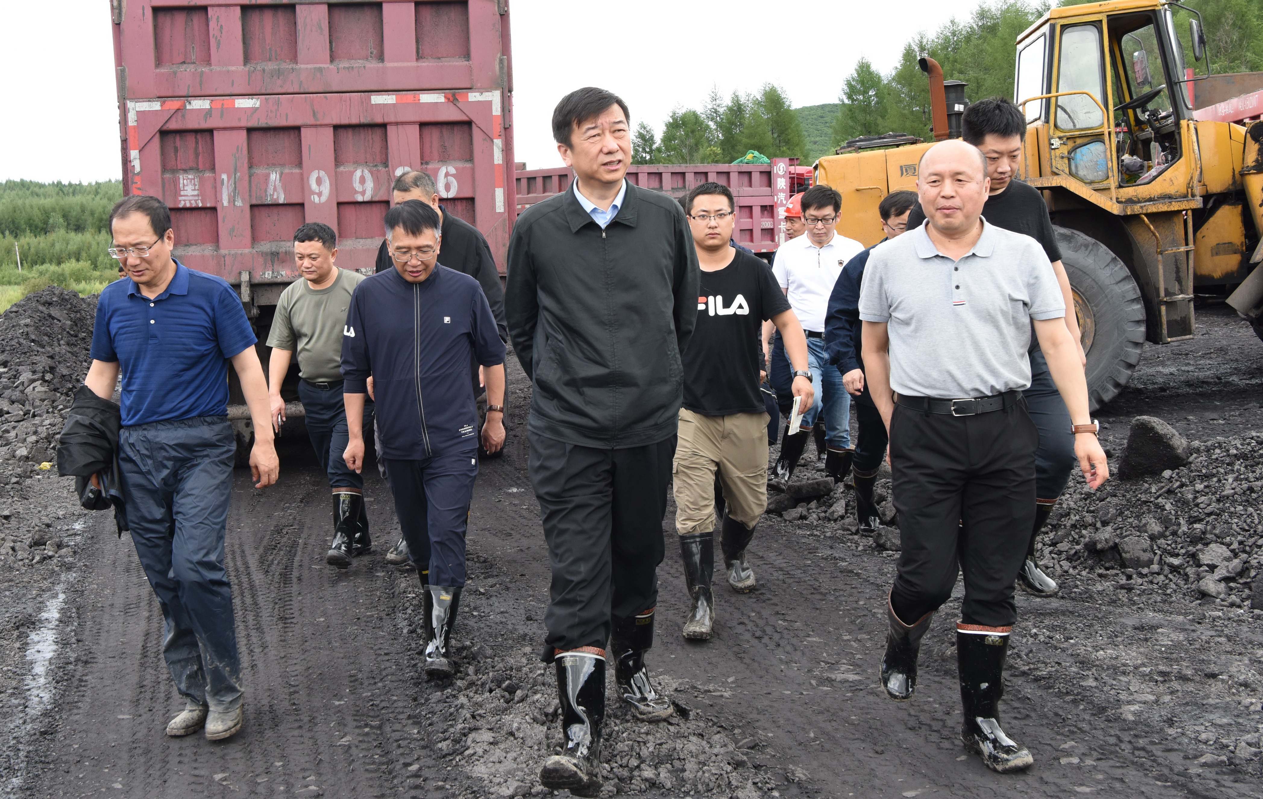 七台河矿业公司党委书记、董事长张长山,总经理刘金奇,集团公司相关部门有关人员参加防汛巡查。(张国伟)