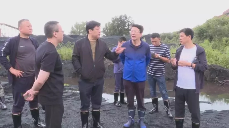 图为双鸭山矿业公司党委副书记、董事长、总经理宫延明率队踏查雨季“三防”工作