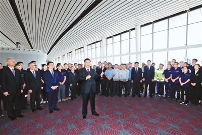 习近平强调,共和国的大厦是靠一块块砖垒起来的,人民是真正的英雄。大兴国际机场体现了中国人民的雄心壮志和世界眼光、战略眼光,体现了民族精神和现代水平的大国工匠风范。他希望广大建设者在新的征程上再接再厉、再立新功!