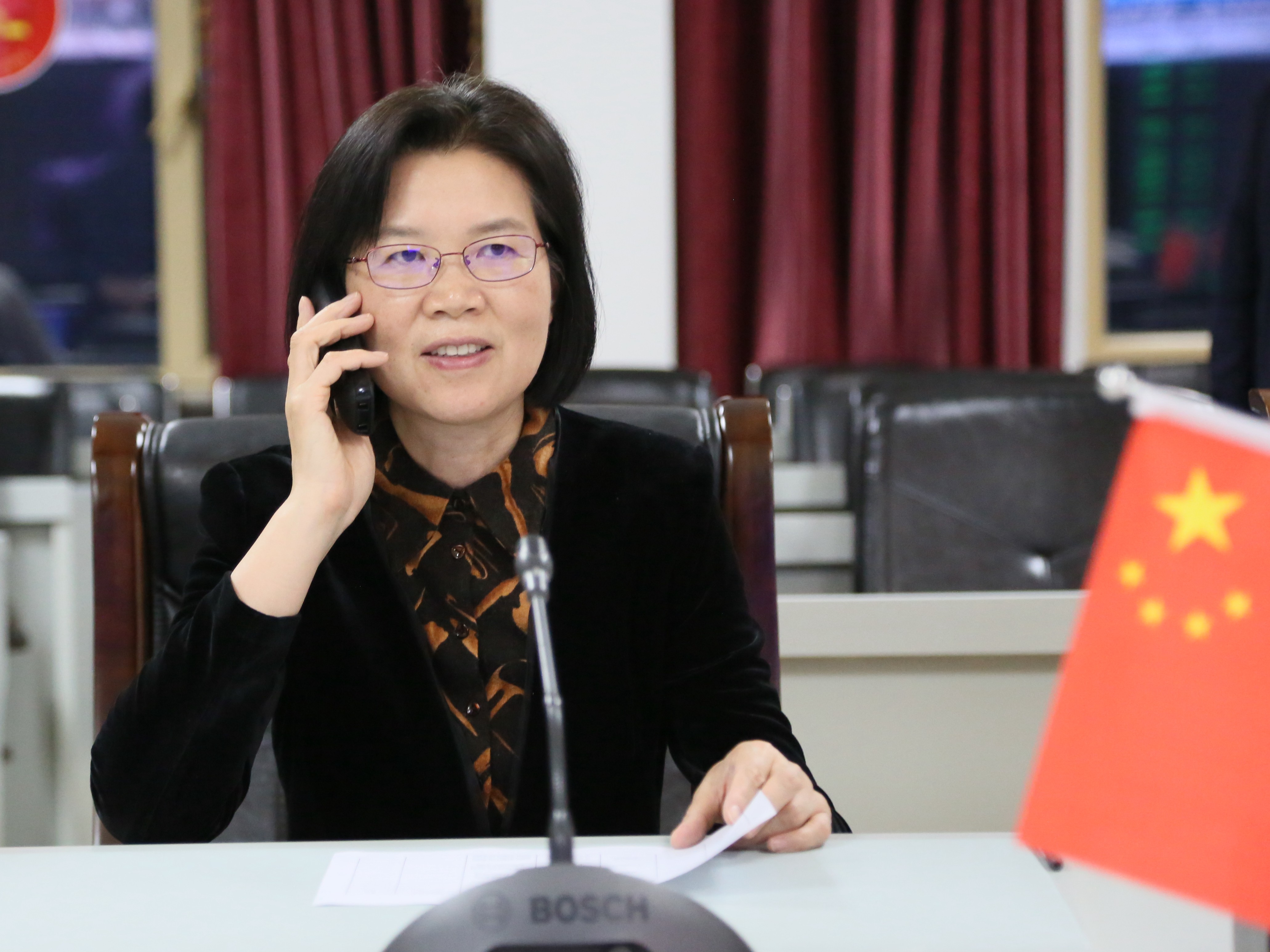 副省长沈莹在集团公司总部调度指挥中连线鸡矿公司新发煤矿井下中央变电所值班人员,并向节日期间坚守岗位的煤矿干部工人致以节日的问候。摄影 闫英群