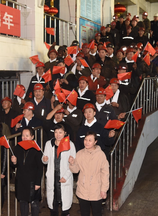 龙湖矿家属协管员与矿工们共同歌唱《我和我的祖国》
