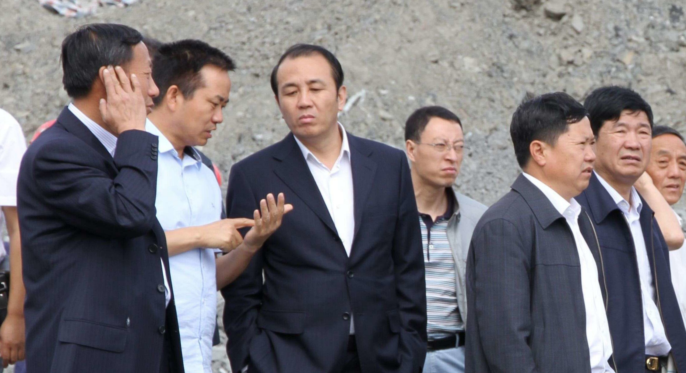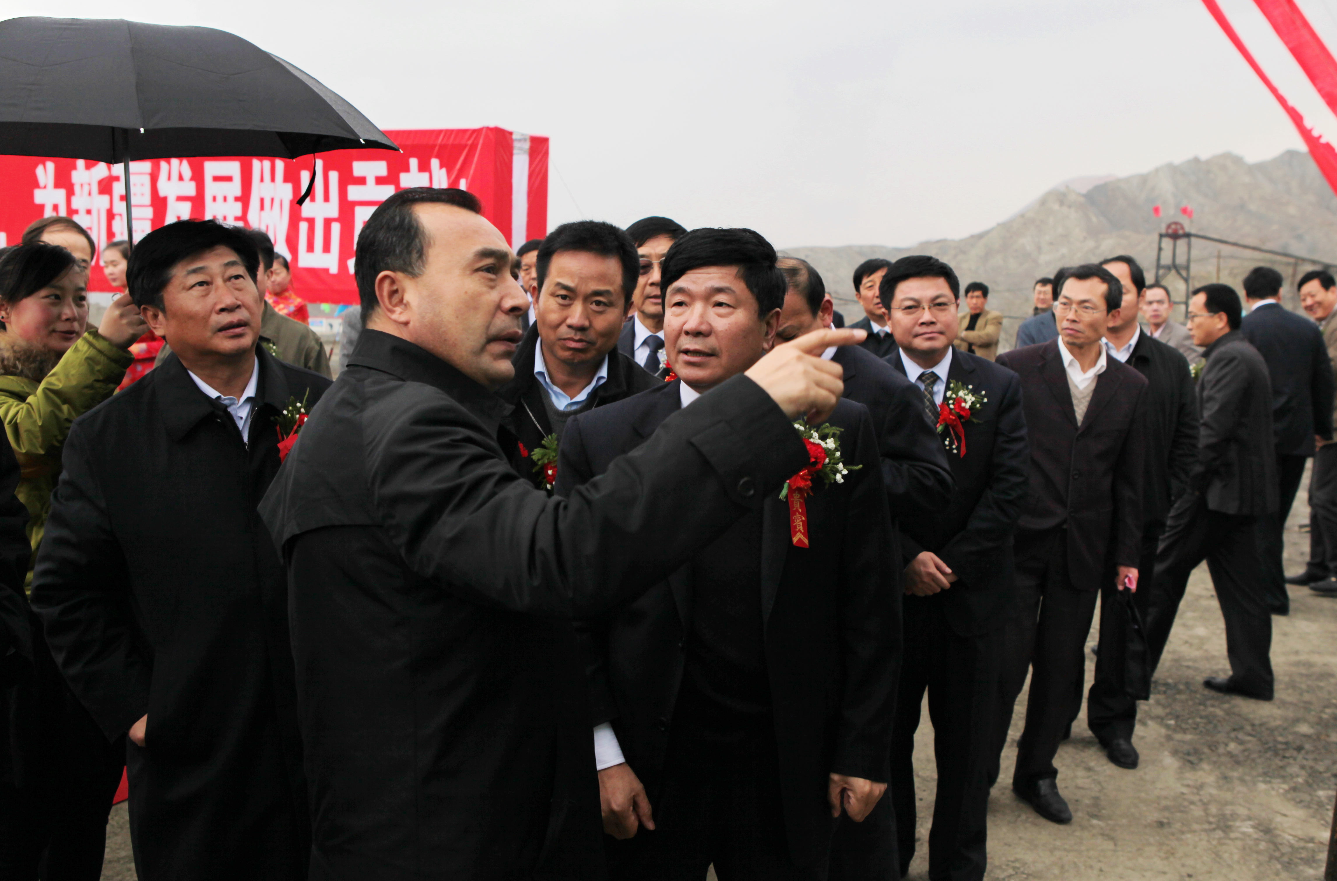 时任黑龙江省国资委副主任高欣(右一)视察新疆公司矿井建设情况。