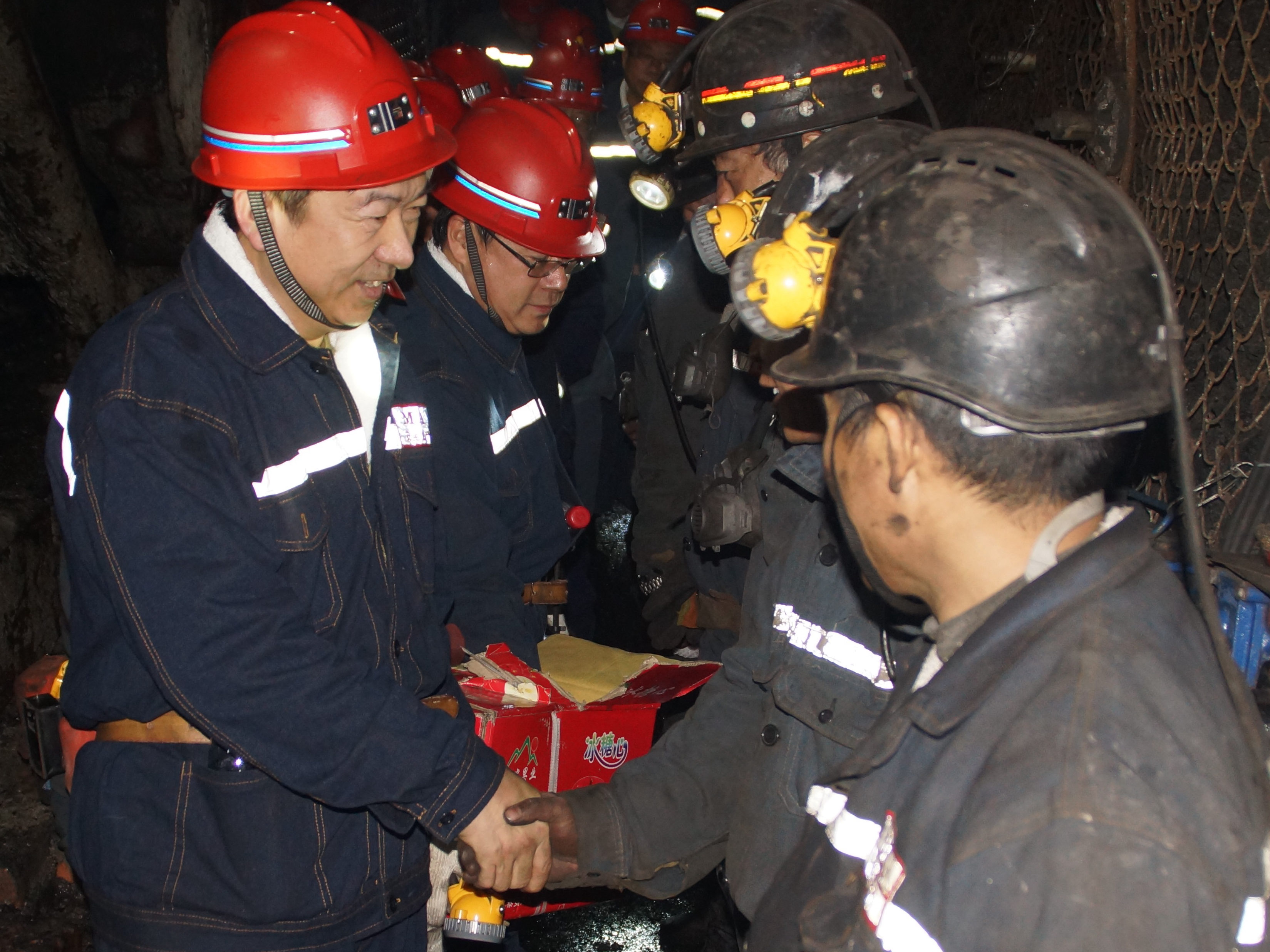 时任beat365官方网站总经理孙成坤深入黑眼泉煤矿慰问井下一线职工。