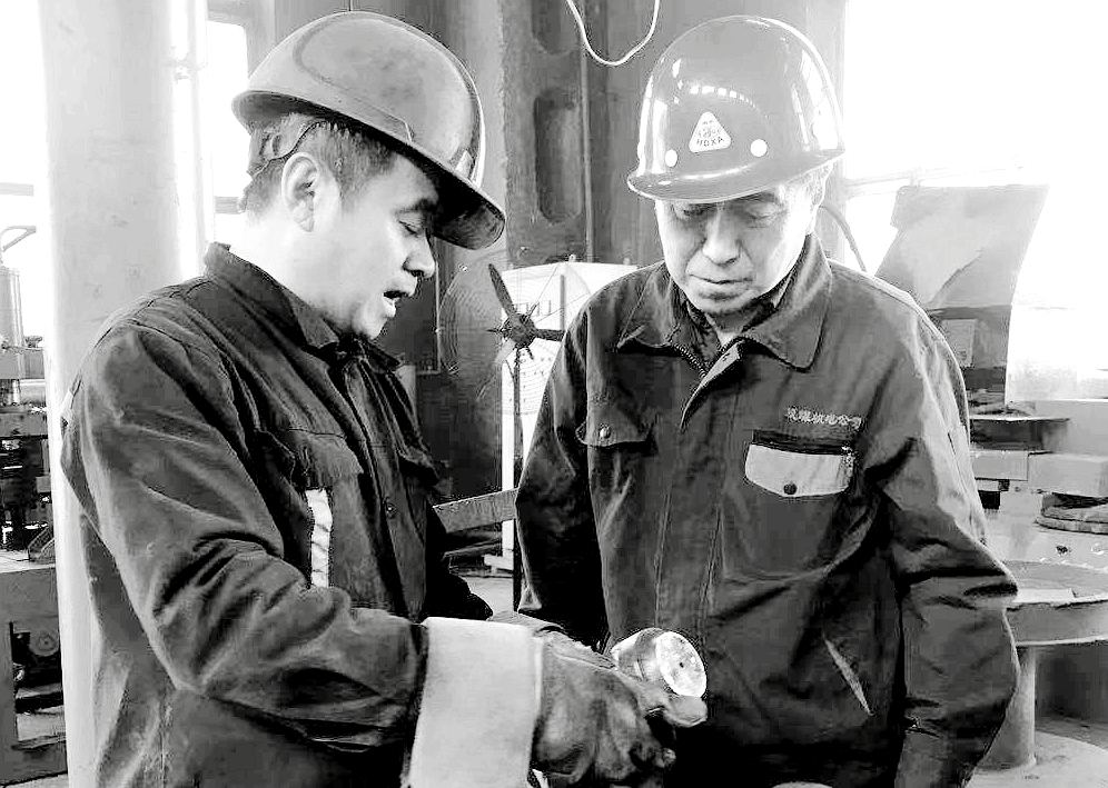 图为双煤机电公司职工正在研讨配件加工技术