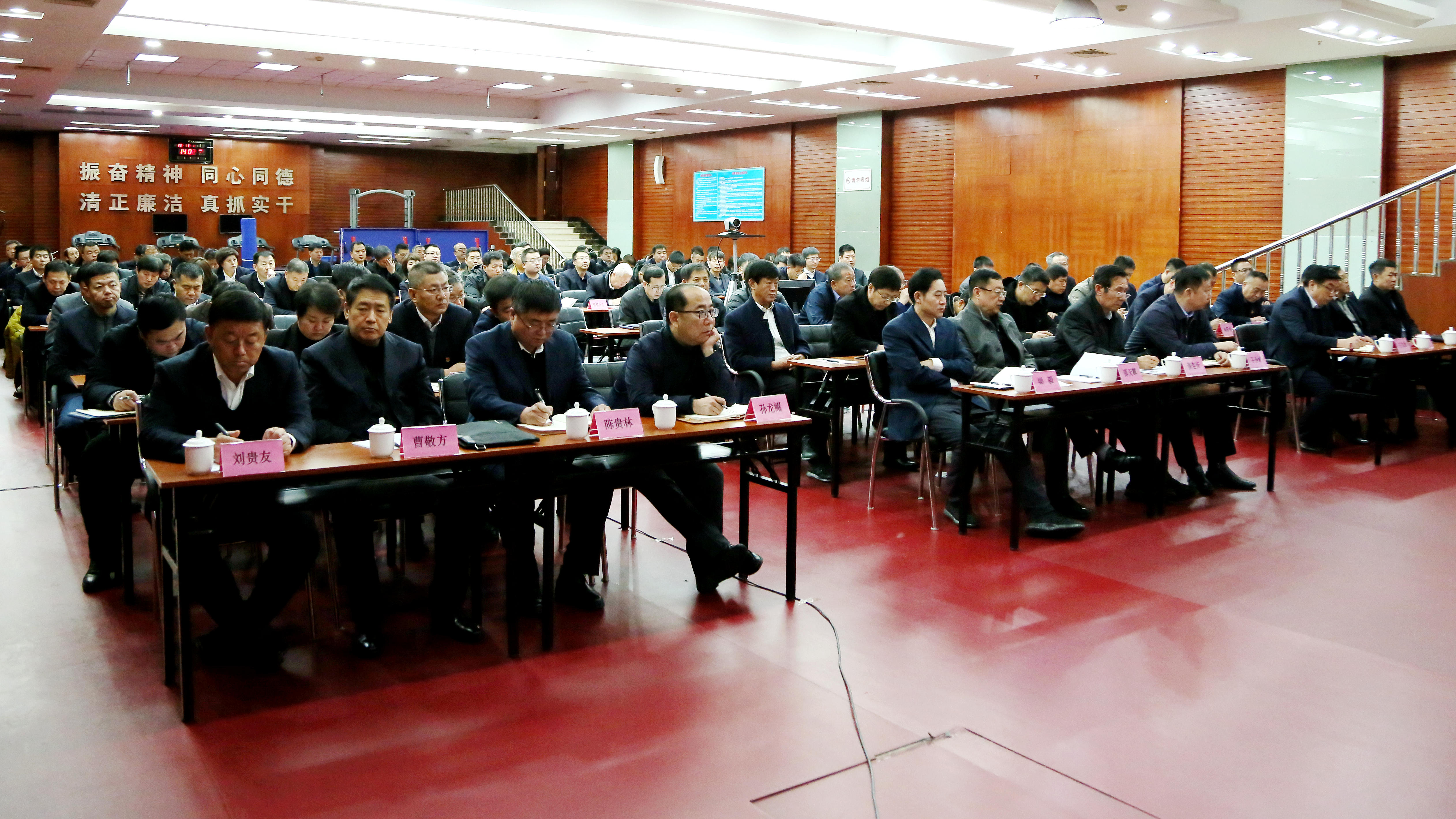 集团机关全体党员干部,权属各公司机关中级副职及以上管理人员,矿(厂处)机关科室负责人及以上管理人员分别在主分会场参加会议。(图文/闫英群)