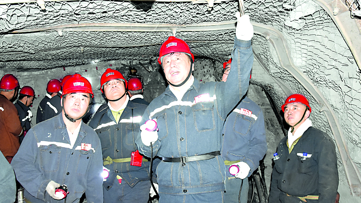 左图为鸡西矿业公司董事长、总经理王佳喜深入井下检查安全工作,右图为鸡西矿业公司党委书记董兴春深入井下检查安全工作。