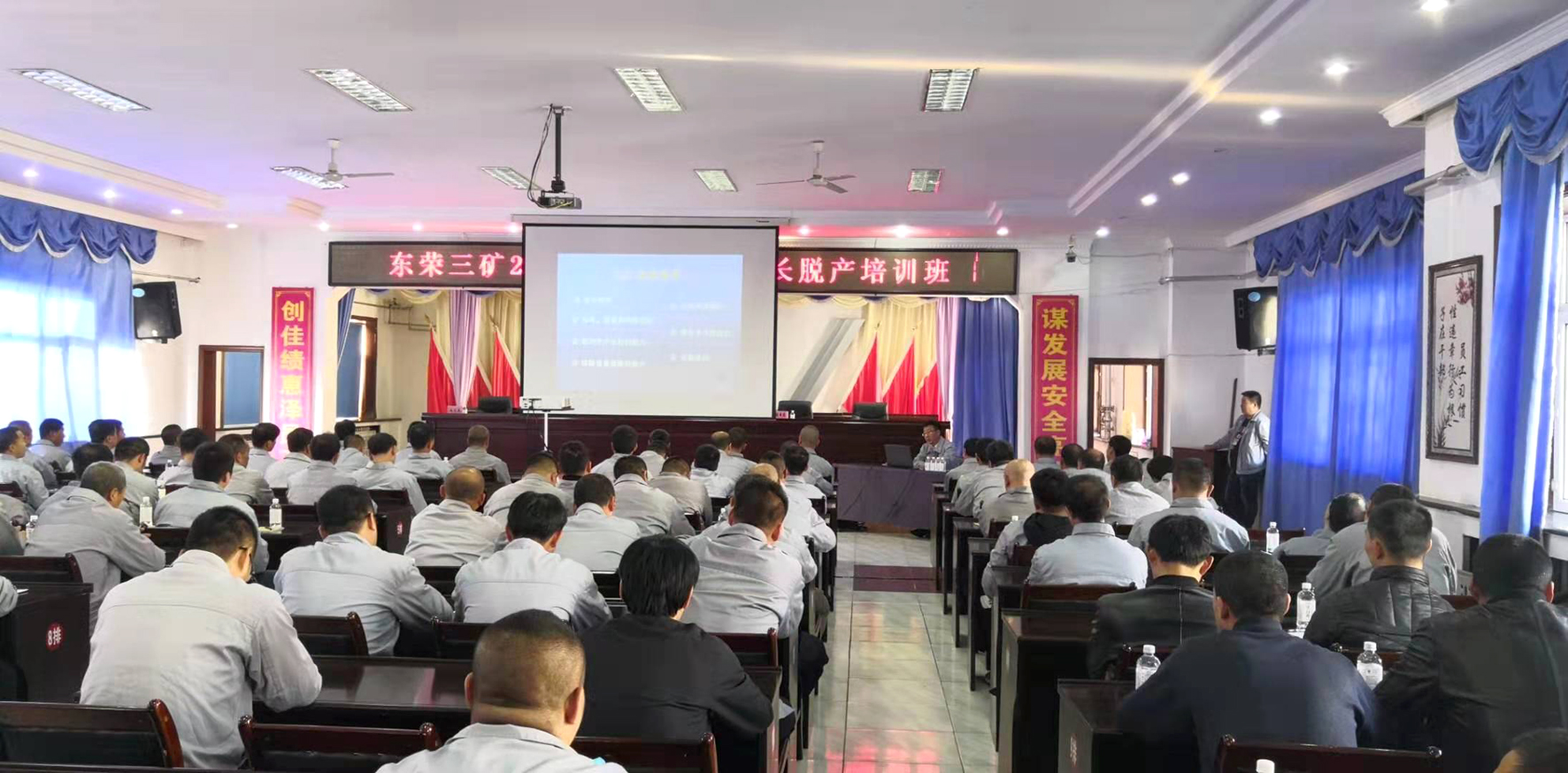 为提高班组长素质,充分发挥班组长的示范带头作用,东荣三矿定期组织全矿班组长开展安全知识培训。图为培训现场。张久兴 摄