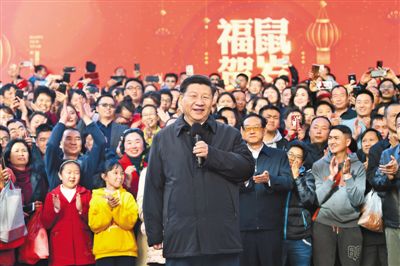 展厅外广场上挤满了前来置办年货的群众。看到总书记来了,大家围拢上来,齐声欢呼“习主席好”。习近平同大家亲切握手,向云南群众、向全国各族人民、向港澳台同胞和海外侨胞致以新春祝福,祝福大家新的一年里身体健康、阖家幸福、和气致祥、事业进步,祝愿各族人民安心、顺心、开心,生活越来越好,祝愿伟大祖国欣欣向荣。