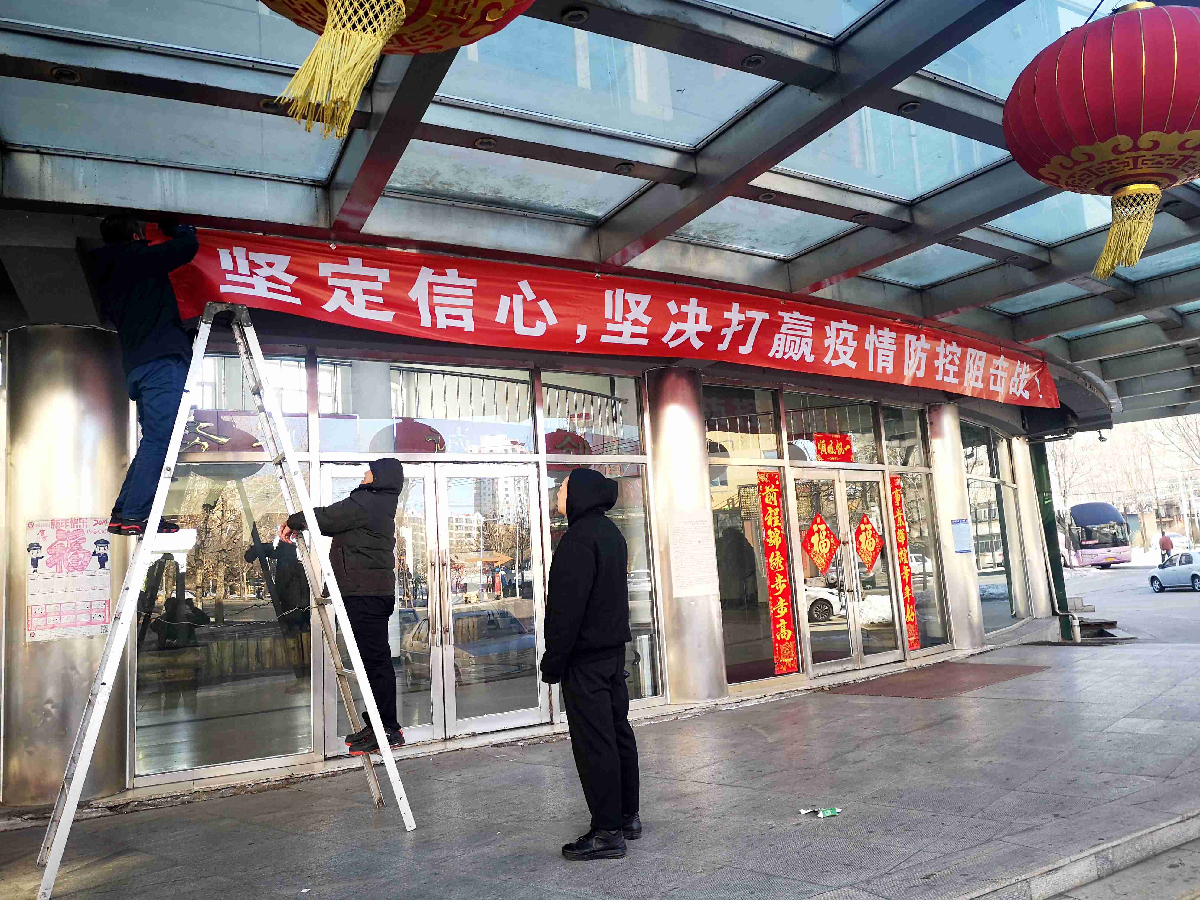 鹤矿房产处悬挂防控疫情宣传条幅