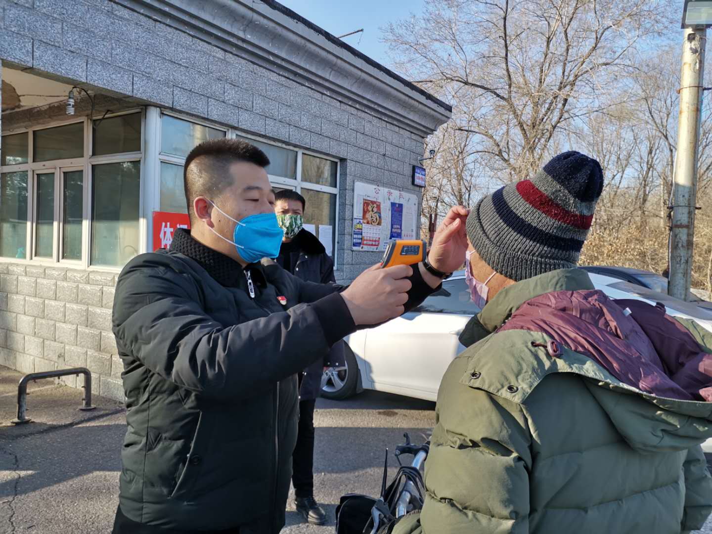 王明星主要负责办公楼大门和矿大门的把守工作,按照矿疫情防控应急处置领导小组关于严禁外来人员和车辆进矿,对有特殊原因进矿的本矿职工车辆实行一杆一测,对出勤的职工实行一人一测的安排部署。王明星每天清晨不倒6点,就头顶晨星,踏着积雪,冒着严寒,站在矿大门前,为出勤的职工一一测试体温,做好登记。前段时间室外温度最低时接近零下30度,尽管戴了手套,工作一会手指还是会被冻得麻木,为了不耽误出勤职工时间,保护保卫人员不被冻感冒,王明星总以自己当过兵、身体好为由,尽可能的在岗位上多坚持一阵,让别的组员多在屋里呆一会,经常在外面一站就是1个多小时。为了保证测温仪器不在室外低温下失灵,导致职工体温测试不准,他在腰间挂上热水袋,测一次体温就把测温仪器放在热水袋上暖一暖,冷风顺着他敞开的领口往衣服里钻,脖子一会就被冻得通红,可是他依然不肯早进屋暖上一暖。