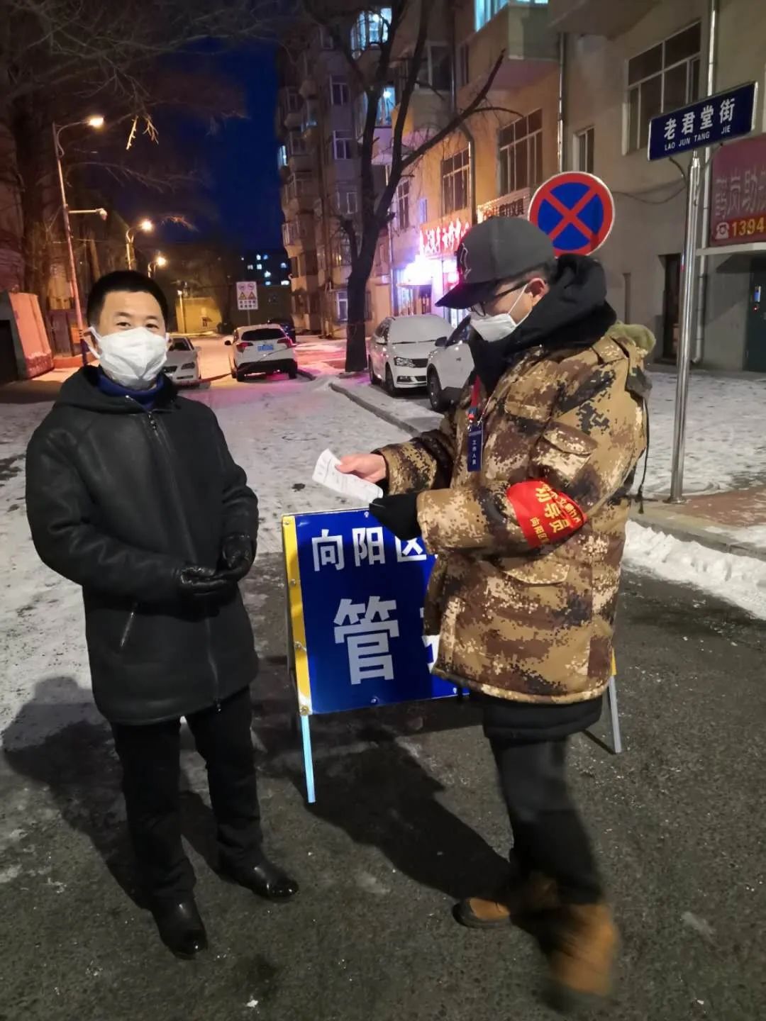 为了防止疫情大肆蔓延,全国每个城市中的社区、街道成为了疫情防控前沿阵地的第一线。是选择“在家也是做贡献”,还是选择去一线当志愿者?“疫情面前,没有局外人,我要为战‘疫’一线出份力!”他以一名普通党员志愿者的身份,主动向所居住的鹤岗市向阳区第八社区报到,积极投身到社区疫情防控战斗之中。在志愿工作中,他承担着老君堂街道电大卡点的交通管控工作,每天分时段对过往人员进行检查,耐心细致地讲解防控知识、查询出入证件、劝导违规人员、指导填报龙江健康码,有时早起7点上岗,有时晚班8点下岗,在零下20度的风雪中一站就是两个小时,没有一句怨言。当社区领导因心疼而给他调整一下轮岗时间时,他则憨厚地说:“什么时间上岗都可以,我服从社区安排。”截至2月27日,经他核查的人员200多人次、劝返无证外出人员58人次。同时,他在管控卡点执勤交班后,还积极协助社区网络员开展所属居民电子信息表格录入工作,累计完成个人信息填报120余份。他认真负责的态度、精准高效的执行力得到了社区领导和志愿者们的高度评价。
