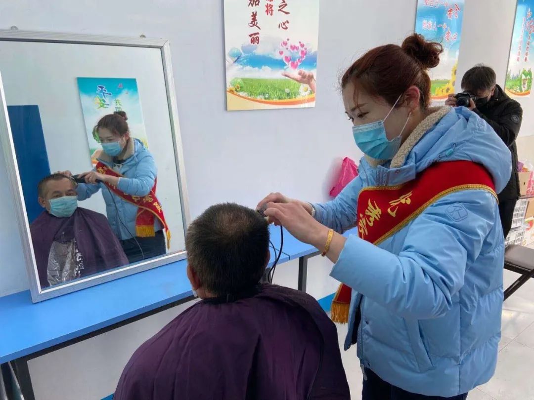 双阳矿女工家属协管员在农历二月二日为复工职工理发