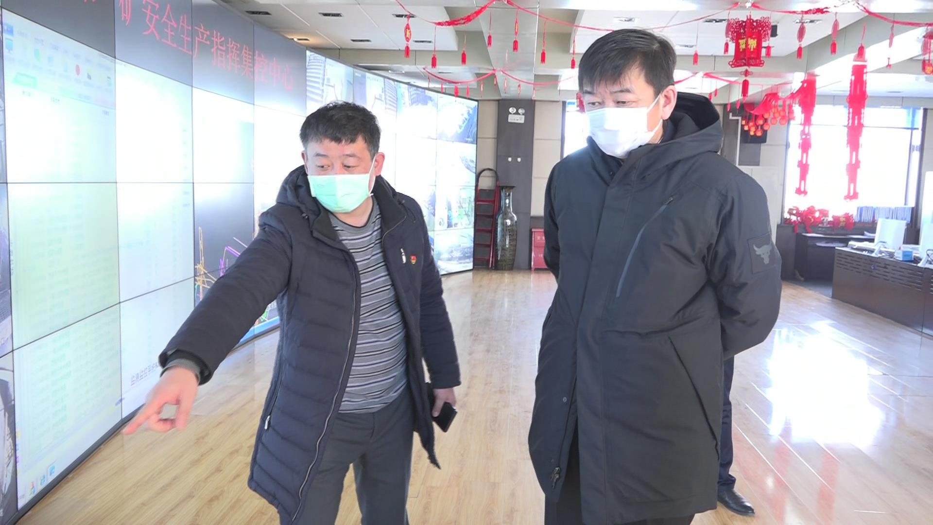 在东荣一矿安全生产指挥集控中心,孙成坤查看了视频监控、人员定位等系统情况,还到技术研究工作室观看了东荣一矿制作的《战“疫”先锋队,矿区党旗红》宣传片。