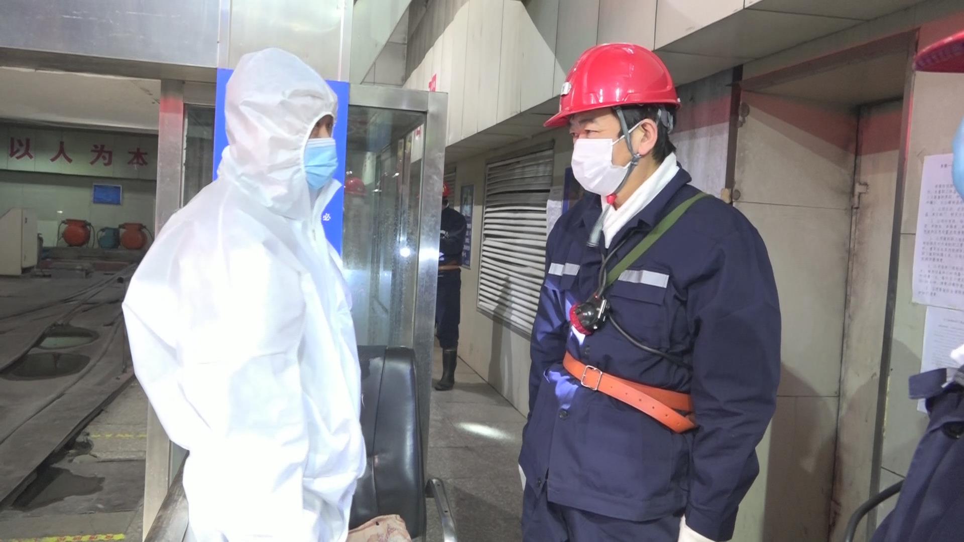 孙成坤在入井检身处向检身人员了解疫情防控措施落实情况