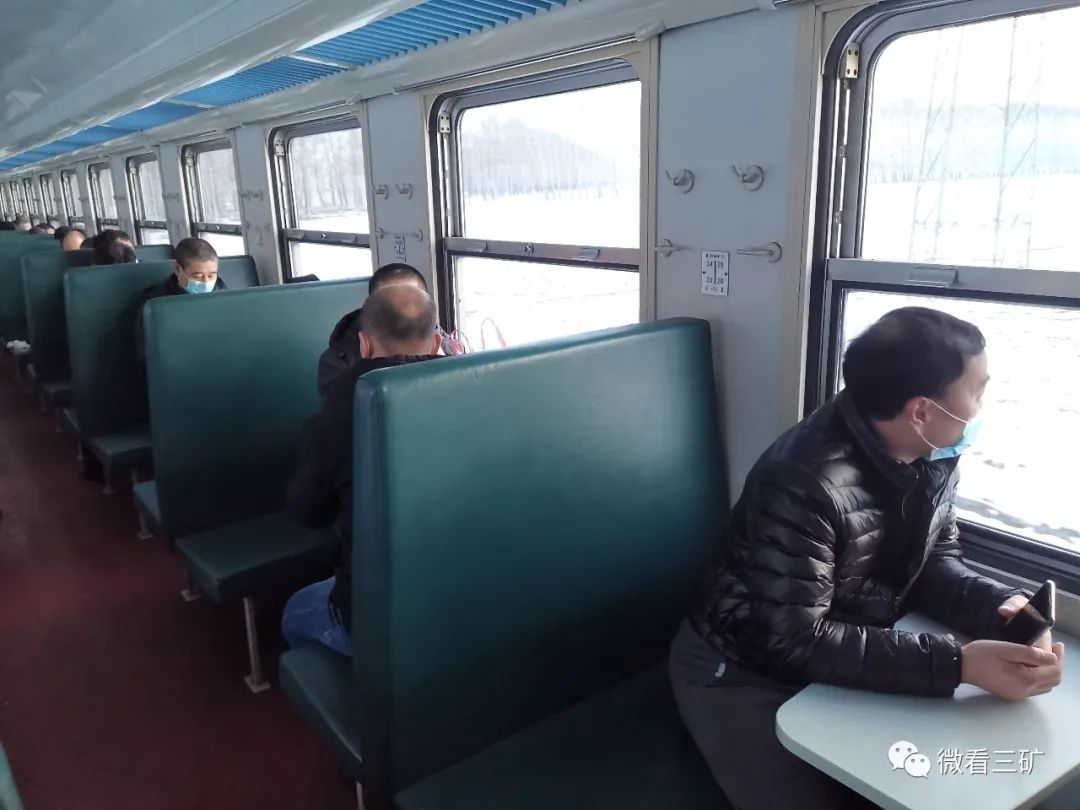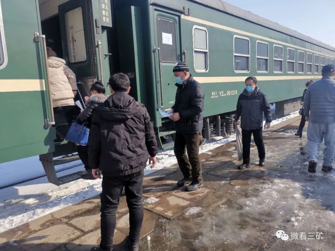 图为东荣三矿通勤职工乘坐火车