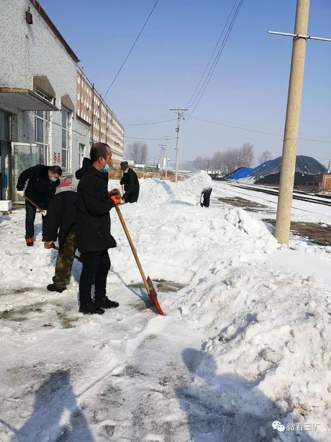 东荣火车站平方面积很大,铲冰除雪任务极其艰巨。党委书记王新辉在矿已经连续一个多月未回家,一直忙碌在防控疫情的矿区。早晨,他冒着严寒冷,带领煤质管理中心的党员干部一起在现场设定铲冰除雪的具体细节,并带头同党员干部一同参加清雪战斗。