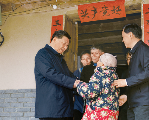 2017年6月21日至23日,中共中央总书记、国家主席、中央军委主席习近平在山西考察。这是6月21日下午,习近平在忻州市岢岚县赵家洼村看望特困户王三女一家。 新华社记者 庞兴雷/摄