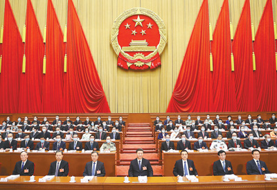习近平、李克强、汪洋、王沪宁、赵乐际、韩正、王岐山和大会主席团成员在主席台就座。
