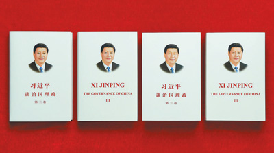 这是《习近平谈治国理政》第三卷中英文版的精装版和平装版(六月二十九日摄)。