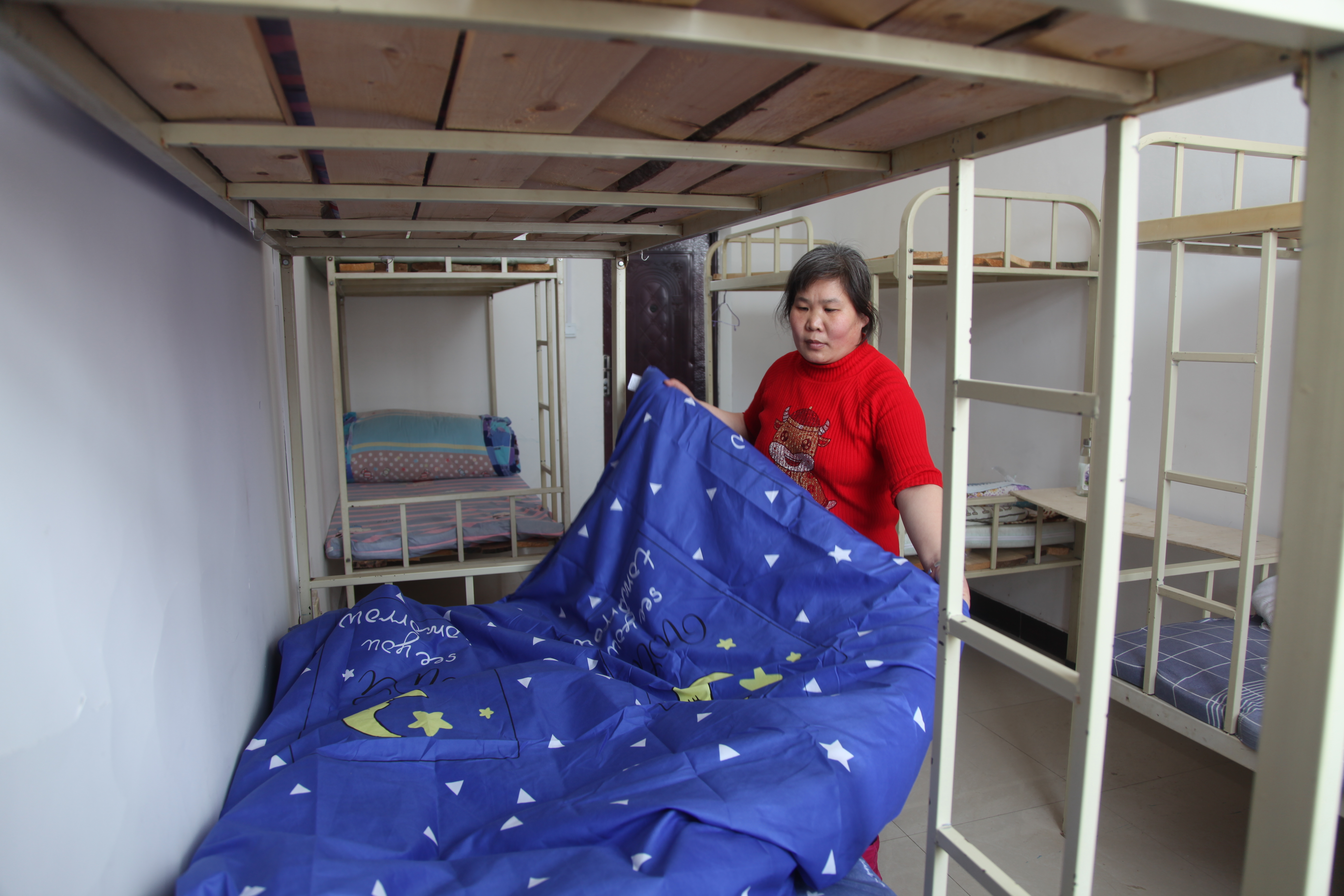 “别在床上抽烟,去走廊抽。”看到有些职工叼着烟躺在床上睡着了,她一次次提醒,并准备了空罐头瓶子装上水给他们做烟灰缸。她理解工人:“干一天活累了,抽支烟解解乏,但防火意识不能松。”