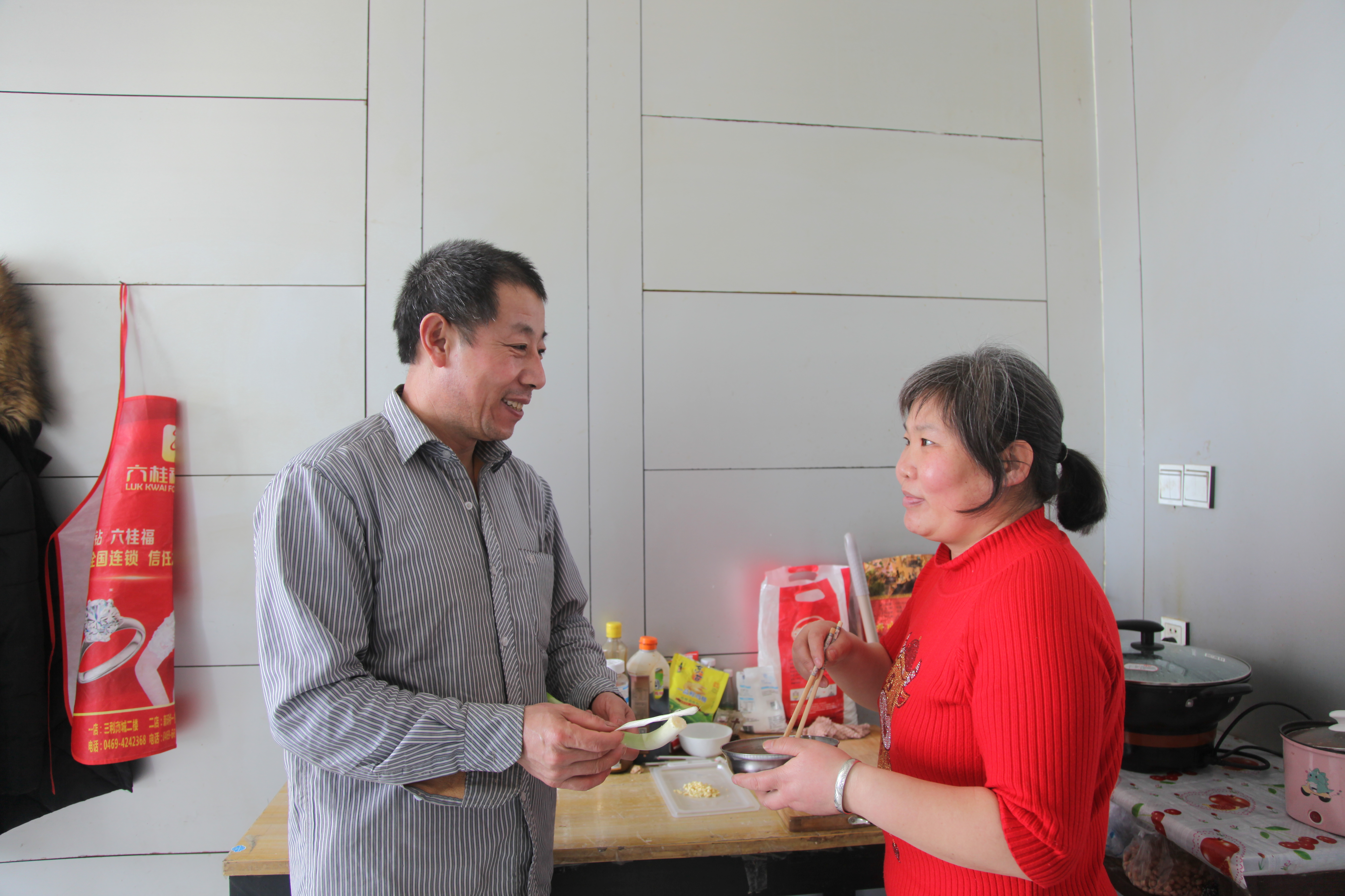 今年春节,矿里特地为就地过年的外地籍职工安排了活动室,购置了彩电、冰柜、洗衣机等家电,准备了鸡鱼肉蛋各种食品及酒类,还组织家属协管员提前包好了一冰柜的水饺。为方便节日期间照顾住宿职工,苏文芳和丈夫也搬到了宿舍,一张旧办公桌,两张上下床,就是他们临时的家。年三十那天,夫妻俩和就地过年职工一起动手,做了一桌丰盛的年夜饭,同前去看望他们的矿领导共同举杯,祝福国泰民安、企业兴盛。