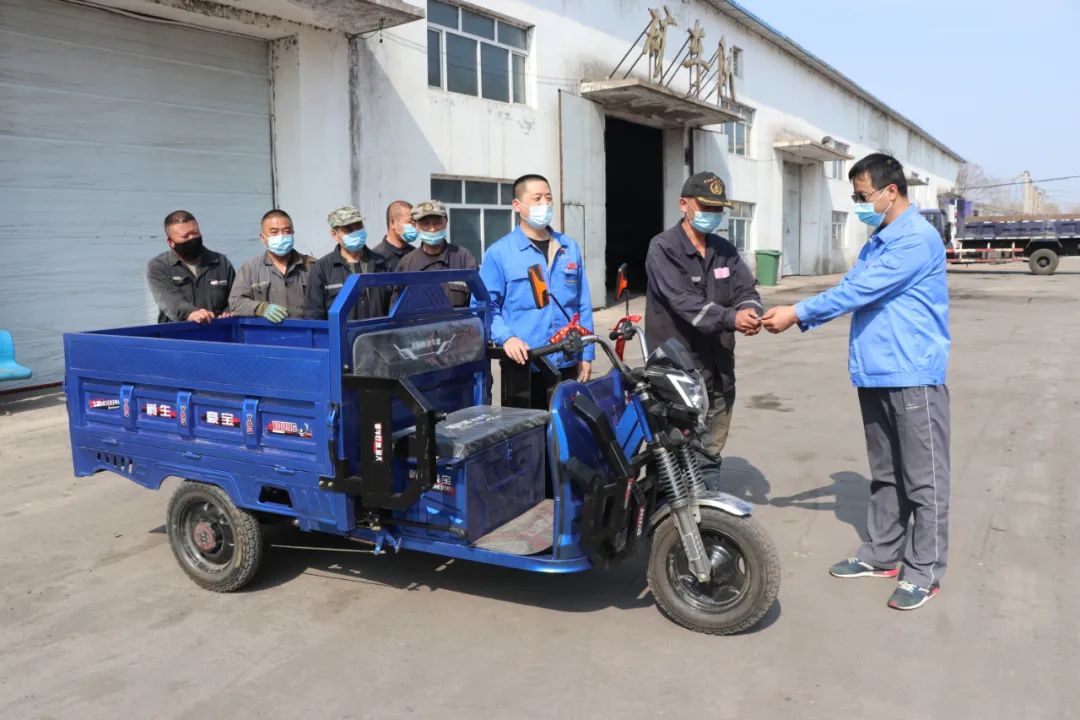 “感谢领导对我们工作的支持和肯定,奖励我们电动摩托三轮车,我们一定不辜负领导的期望,再接再厉,创效增收。”
