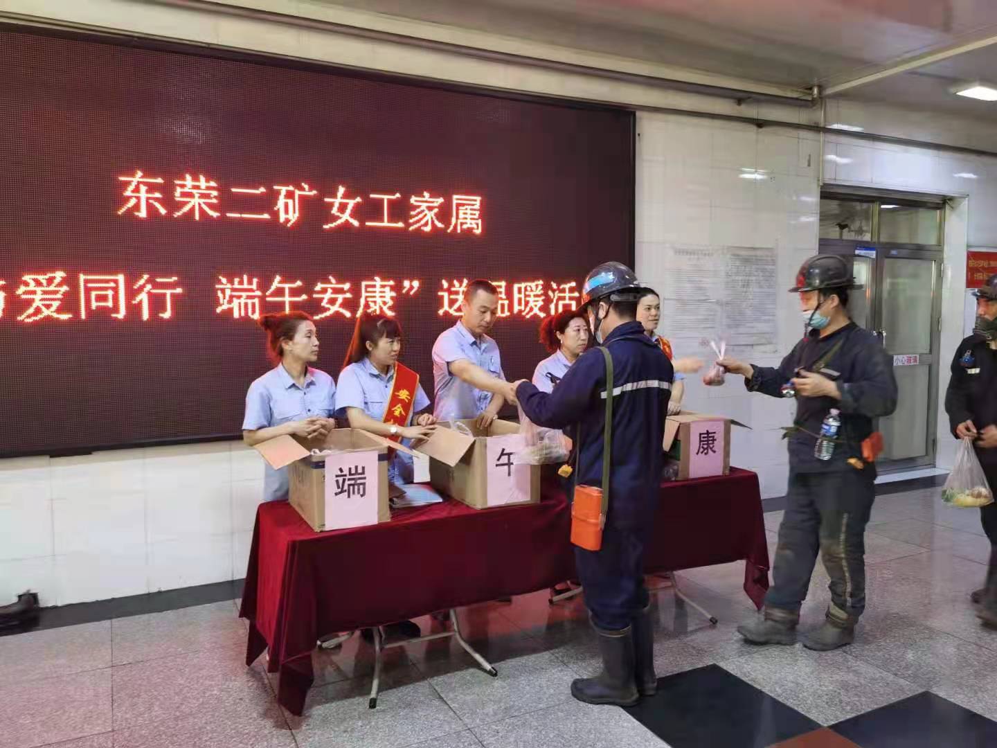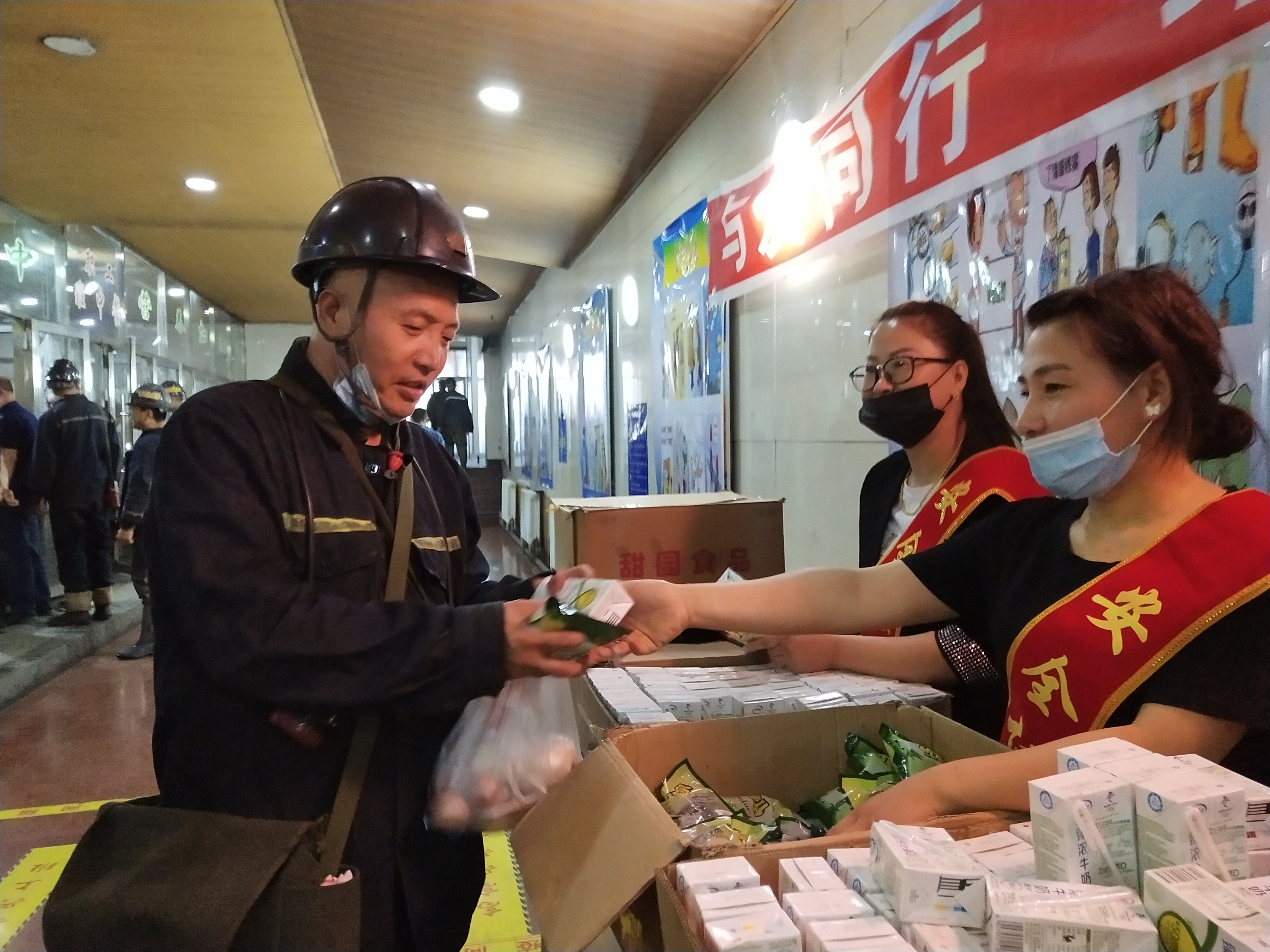 6月14日端午节当天,公司工会女工委以"与爱同行 端午安康"为主题,组织女工家属协管员开展慰问活动。女工家属协管员包粽子、煮鸡蛋,共慰问矿工10000多人,发放粽子5000余斤,鸡蛋3000余斤,牛奶、香肠等上万份,参加活动的女工家属协管员160多人。(杨宗纬)