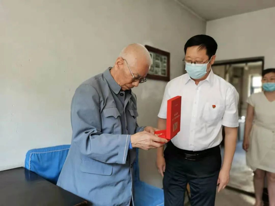 在隆重庆祝中国共产党成立一百周年前夕,鹤矿公司新陆煤矿党委带着党组织的深情厚谊,走进离休党员武魁同志家中,为他送上《光荣在党50年纪念章》,共庆党的百年华诞。