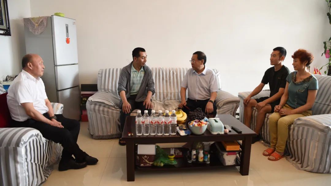 在田明辉家中,沈霆代表集团公司党委、集团公司对田明辉多年来为七煤发展做出的贡献表示感谢。沈霆说:“你是全国劳动模范、省党代会代表,也是集团公司、七煤的功臣。你工作在最危险、最艰苦、最累的生产一线,为国家发展和企业煤炭生产做出了突出贡献,要继续发扬成绩、埋头苦干,发挥党员的先锋模范作用,为企业发展再做新贡献。”
