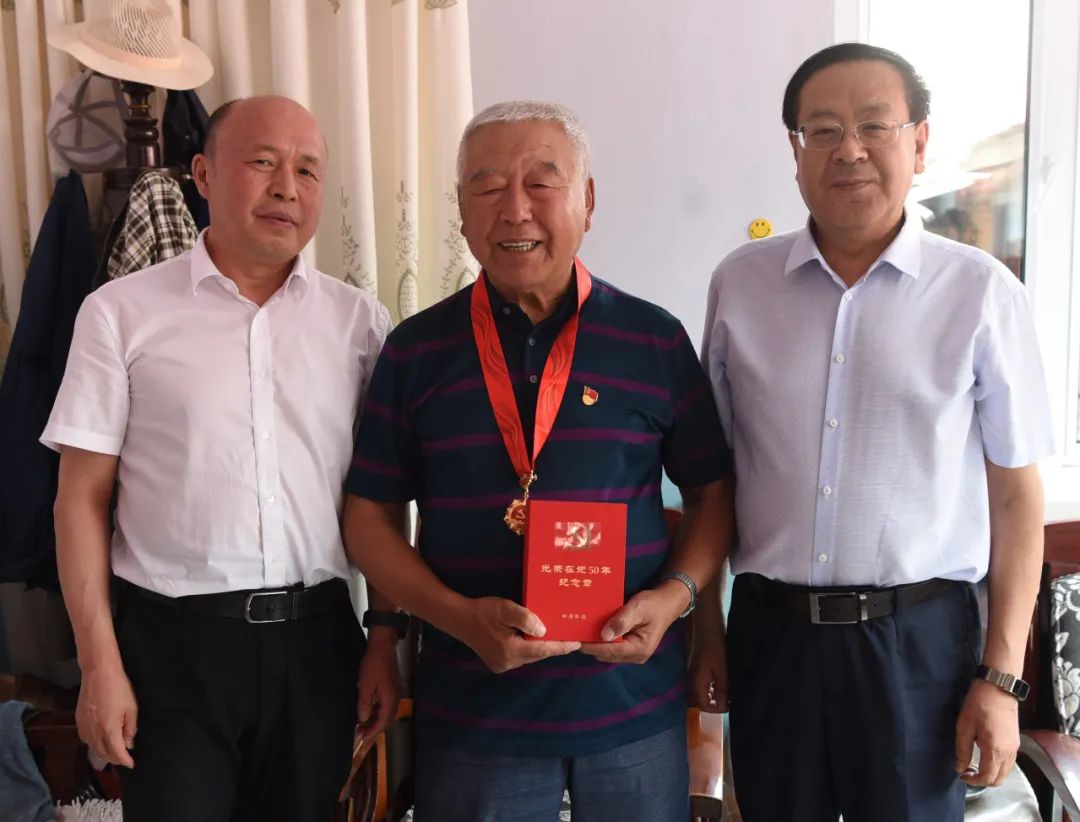 在董占奎家中,沈霆为董占奎佩戴了中共中央颁发的“光荣在党50年”纪念章,关切地询问他的身体状况和日常生活情况,倾听老干部在建设七煤艰苦年代的拼搏奋进史,重温峥嵘岁月,畅谈新时代的发展变化。沈霆说:“在即将迎来建党100周年之际,党中央今年首次颁发‘光荣在党50年’纪念章,充分体现了以习近平同志为核心的党中央对老党员的充分肯定和高度褒奖。我代表集团公司党委、集团公司来看望您,您把一生都奉献给了七煤,为集团公司特别是七煤改革发展、生产建设做出了贡献,企业永远都不会忘记老一辈的丰功伟绩,上级党组织更不会忘记你们。”沈霆希望董占奎继续关注企业发展,发挥晚年余热和党员的先锋模范作用,多为企业发展多提宝贵意见和建议,并祝愿他健康长寿、生活幸福。