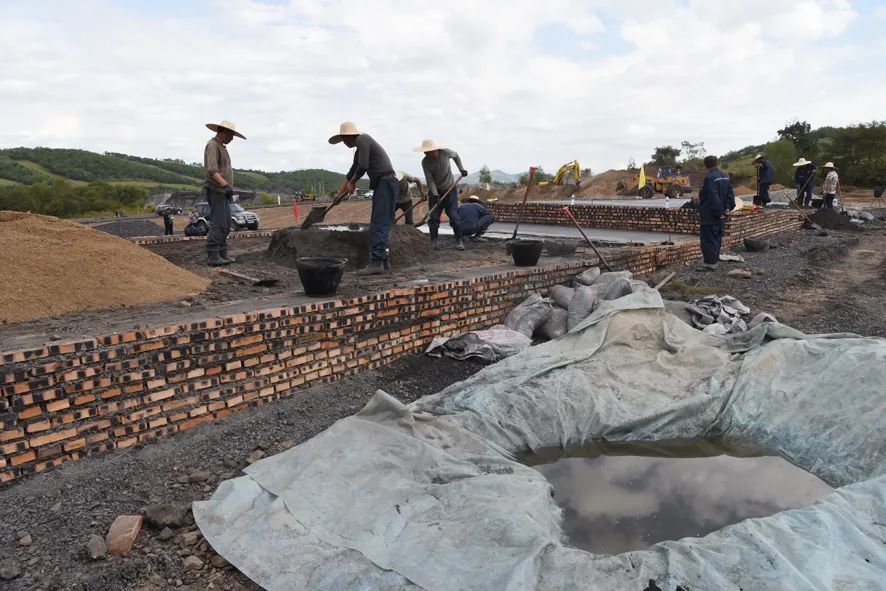 来到七峰煤矿一井项目建设现场映入眼帘的是:入场道路已铺设平整,开工仪式主席台搭设完工,电子大屏幕格外醒目,建设者们正各司其职、紧张有序地施工主井、副井和风井井筒明槽、浇筑混凝土……开工前期各项准备工作正在井然有序推进。