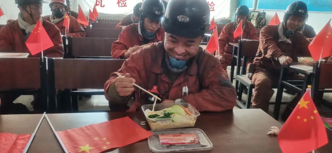 在国庆节这天,在鹤岗矿业公司,为了让广大矿工过上一个欢乐祥和的节日,不仅保健食品公司为全矿区的矿工兄弟们制作了节日班中餐东坡肉,新陆保健食堂还特别为在千尺井下的矿工兄弟送去了热汤面和生日蛋糕。一份热气腾腾的汤面、一份松甜可口的蛋糕,传递着鹤岗矿业公司党委、矿业公司的关怀与祝福,更激励着广大矿工以更加积极的心态、饱满的热情和昂扬的斗志,投身到矿山发展建设中去,为矿山的建设贡献力量!(鹤矿党委宣传部 江海龙)