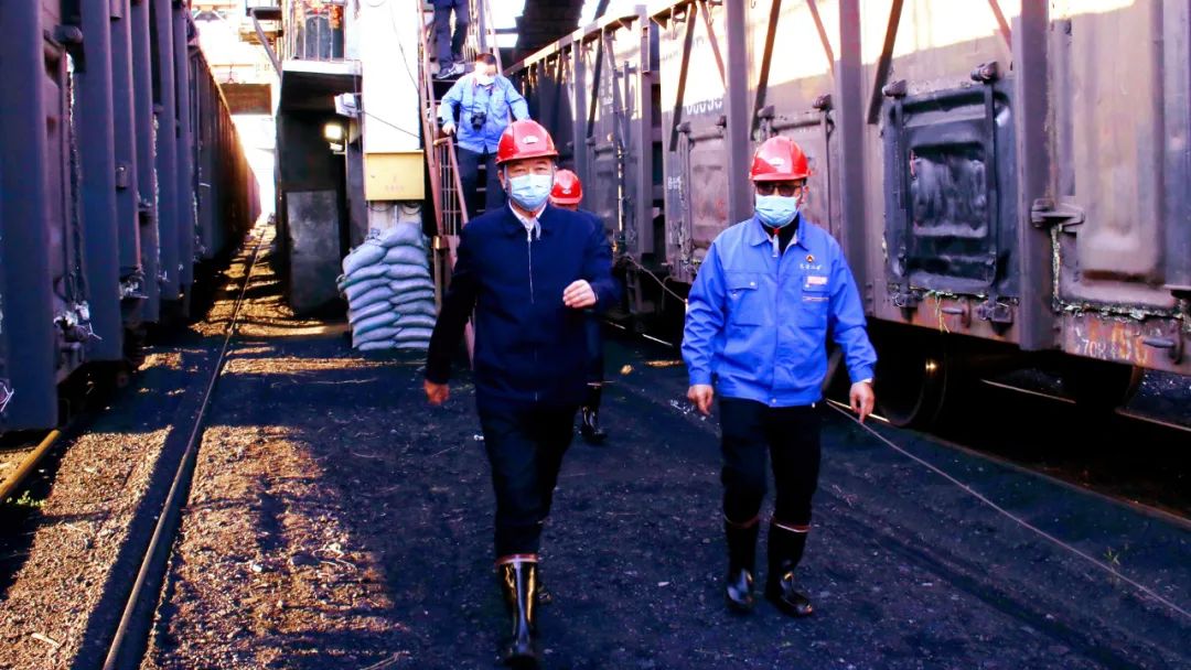 在东荣二矿,孙成坤深入到煤场调研检查原煤储运工作,详细了解了双矿公司各生产矿原煤日产量、车皮发运量等情况,并对各品种煤存储、智能化煤场管控流程、车皮装运环节等进行了详细的检查。孙成坤强调,作为集团公司的主力矿井,东荣二矿在落实全省保供任务上承担着重任,全矿上下要讲政治、顾大局,集中精力抓好日常安全生产,排除万难全力组织好煤炭生产,全力释放优质高效产能,并确保应急储备煤总量,全力以赴保障全省冬季供暖用煤需求。同时,要充分考虑冬季煤场防冻管护,按照绿色矿山环保要求,增设皮带走廊、棚式煤仓等设施。各品种煤仓储、分类要实现精细管理,优化装运流程,有效保证原煤的质与量,有效提高销售收入,增加企业经营效益。