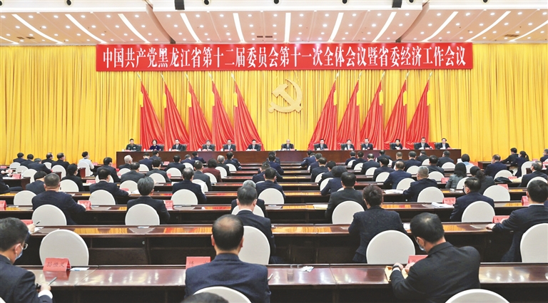 本报25日讯(黑龙江日报全媒体记者曹忠义 薛立伟 李国玉)12月24日至25日,中国共产党黑龙江省第十二届委员会第十一次全体会议暨省委经济工作会议在哈尔滨召开。会议以习近平新时代中国特色社会主义思想为指导,深入贯彻落实党的十九届六中全会和中央经济工作会议精神,组织动员全省各级党组织和广大党员干部以更高的政治站位坚决落实习近平总书记对黑龙江及东北地区的重要指示和党中央决策部署,以更宽的视野科学研判形势,以更实的举措推进高质量发展,以更加昂扬姿态奋斗新时代、再创新辉煌,坚定信心、振奋精神,埋头苦干、勇毅前行,加力推进黑龙江全面振兴全方位振兴,为实现中华民族伟大复兴作出新贡献、谱写新篇章。