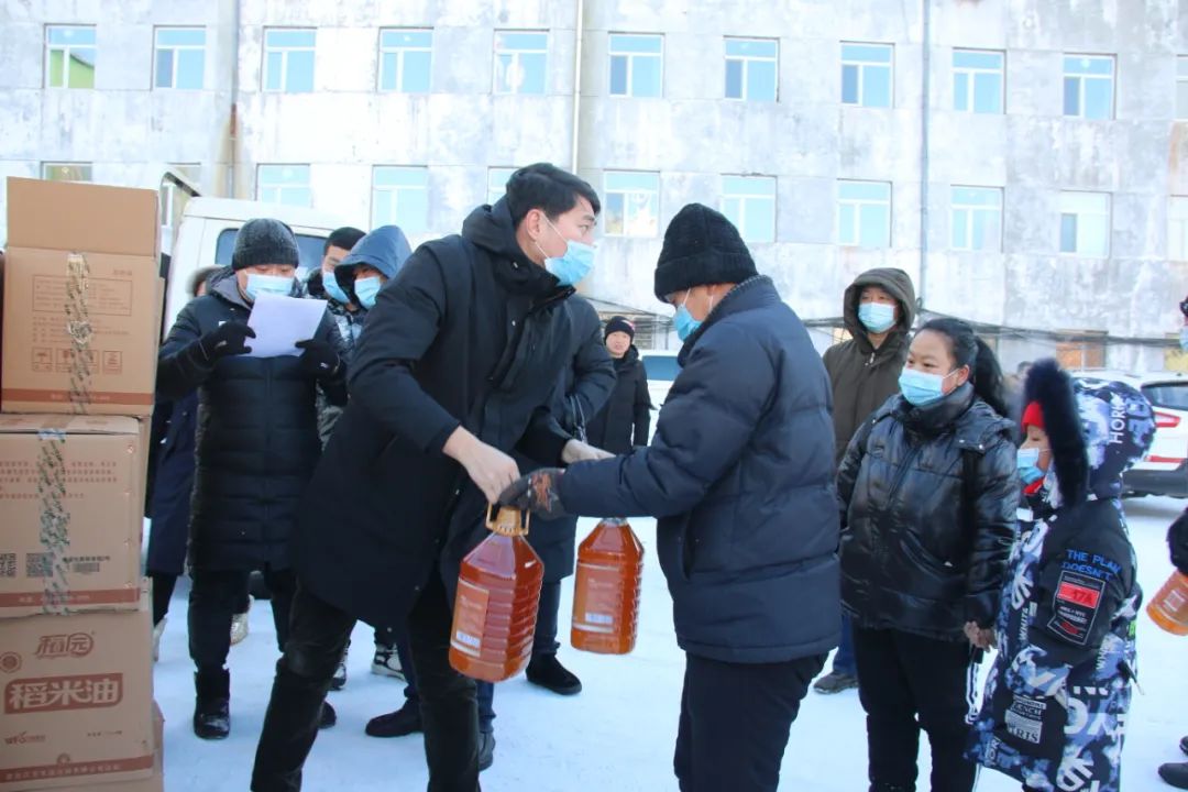 “今天,我们为困难职工发放了米、面、油、香肠和面包等年货,共慰问困难职工950户,对不同困难的职工还有相应的救济款,在春节前把企业的关怀及时地送到困难职工的心坎上,让他们过一个欢乐祥和的新春佳节。” 矿区工会生活女工部部长房冬秋介绍说。
