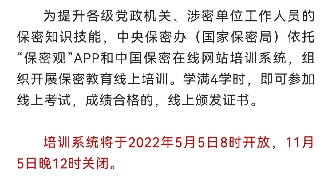5月5日,国家保密教育线上培训开始啦,快来学习吧!