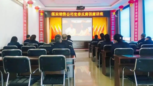 会议室“煤炭销售公司党委反腐倡廉讲座”格外醒目,会场正中央正在播放《平“语”近人》教育片。这是煤炭销售公司党委组织观看《平“语”近人》专题讲座的一个场景。与会党员干部认真聆听了主讲人从“从严治党,严明党的纪律”“深入落实中央八项规定精神,坚持不懈纠正‘四风’”“把权力关进制度的笼子里”“筑牢拒腐防变的思想道德防线”所作的辅导讲座,让全体党员干部职工思想上受到洗礼和警醒。
