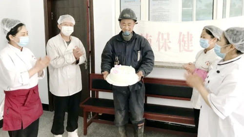 3月17日,在兴安矿综采一队区早班前,传来了《生日快乐歌》,当天是职工刘邦林51岁生日,在进行完班前礼仪和安全培训后,只见他在戴着生日帽,工友为他齐唱生日祝福,刘邦林说像这样跟工友一起过生日的情景毕生难忘,“原来过生日都是老妈和媳妇记着,自己有时候工作忙就忘了,现在企业也记着自己的生日,在生日当天送送蛋糕、祝福,感觉企业就像自己家一样”,刘邦林的幸福心情写在脸上,他说“最近生产紧,煤价好,生日当天就不休班了,和工友们一起把生日蛋糕分享分享。”