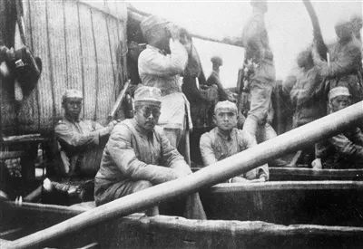 1937年9月,八路军总部政治部副主任邓小平(左四)与朱德(左三,站立拿望远镜者)、任弼时(左二)、罗荣桓(左一)等从陕西省韩城县芝川镇乘船东渡黄河,进入山西抗日前线。罗东进摄