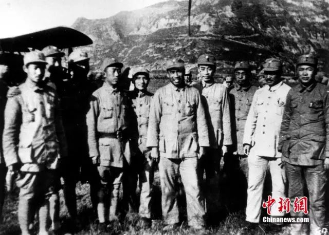 1936年,红军第一军团和十五军团的部分领导干部在陕西淳化县的合影。右起:邓小平、徐海东、陈光、聂荣臻、程子华、杨尚昆、罗瑞卿、王首道。