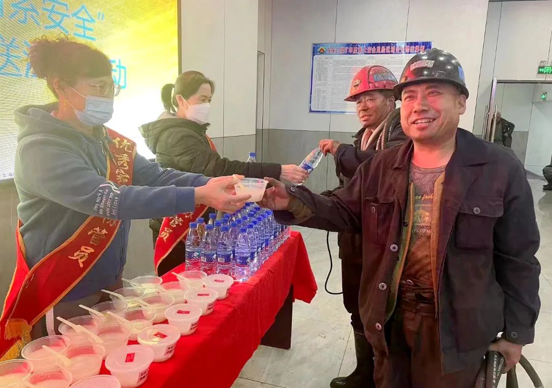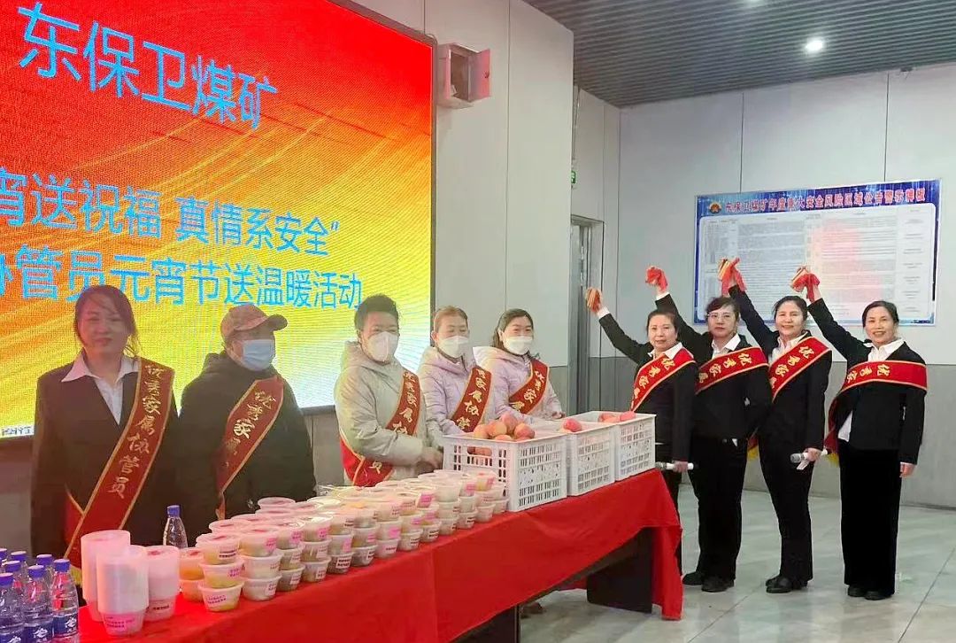 “时时处处讲安全、按章操作讲科学、讲究工序不能乱、工作才能保安全……”为了提高职工安全意识,始终把“安全第一”思想牢记于心,元宵节当天,东保卫煤矿工会组织女工家属来到生产一线,不仅把圆圆的汤圆送给了入井的职工,她们还自编自演了快板《安全在我心》,一句句安全快板铿锵有力,一声声亲切叮咛直击心底。