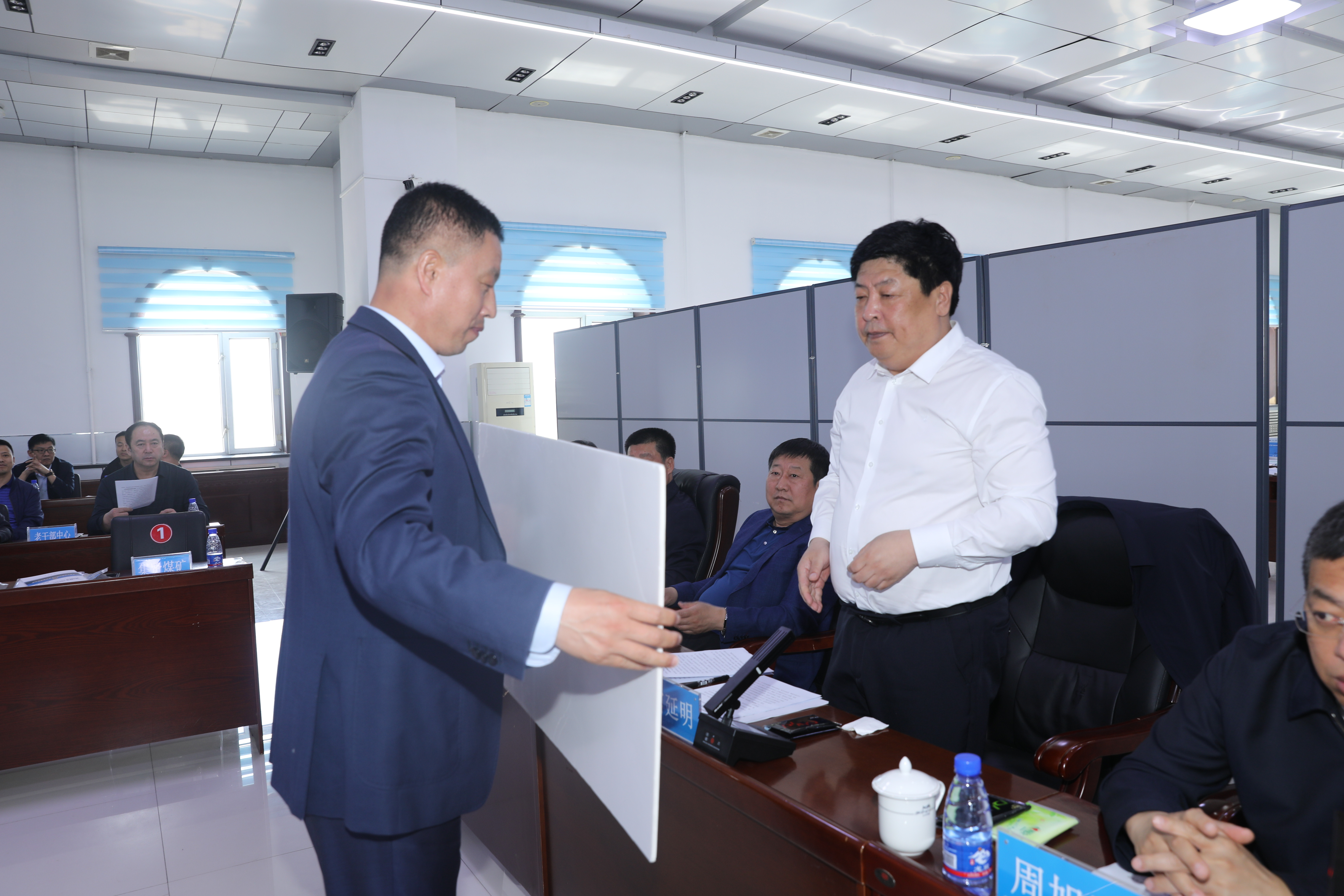 会上,宫延明为集贤矿颁发了安全教育培训现场会奖