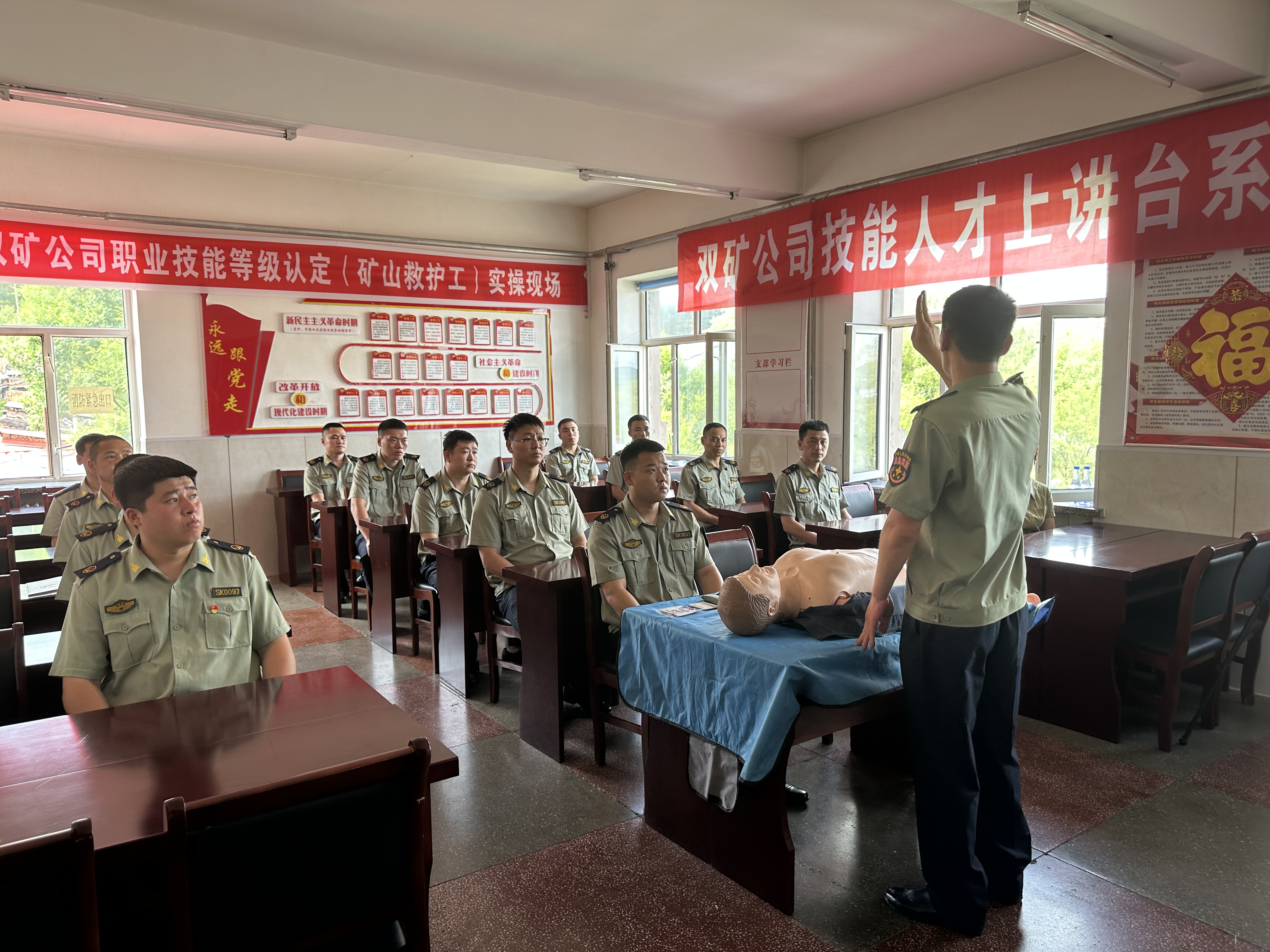 为加快推进队伍建设现代化,助力企业高质量发展,6月29日,公司人力资源部在救护大队开展高技能人才上讲台活动,为救护队员传授技能。