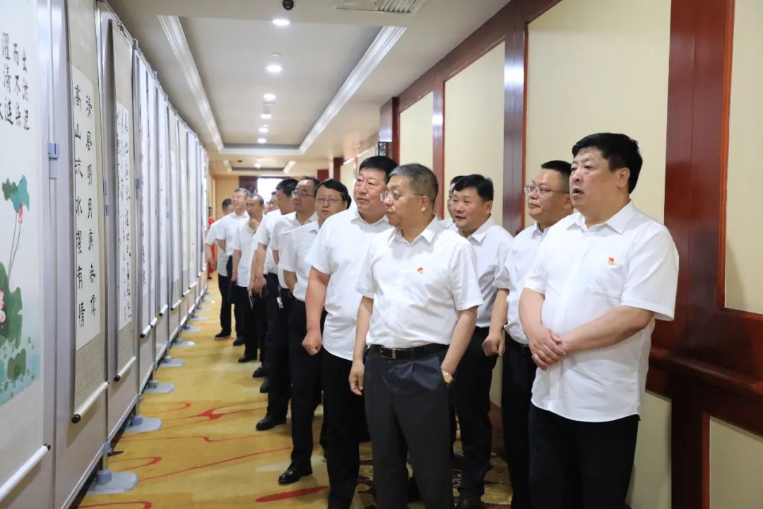 公司党政领导宫延明、周旭明、卢新军、刘衍胜、孙久政、李春、刘金祥、刘洪泉、刘丹、莫永杰、史学东、刘忠启、张广,公司副总师,公司机关部室及二级单位负责人,各单位党政主要领导、党委副书记、工会主席、组织部长、宣传部长等参观了书画展。