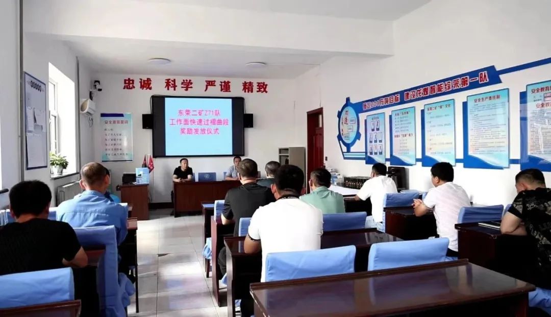 东荣二矿Z71队在工作面受褶曲构造影响、煤层倾角30度以上、仰采角度最大达40度、全岩面长、岩石坚硬等不利条件下,全体干部职工攻坚克难,采用分段式打眼放炮方法,过褶曲构造速度提高了30%。近日,该队圆班为职工发放奖励,激发职工迎难而上的信心,使职工切身感受到该矿说到做到、干到给到的政策红利,充分调动了职工抓好安全生产和克服困难的积极性。