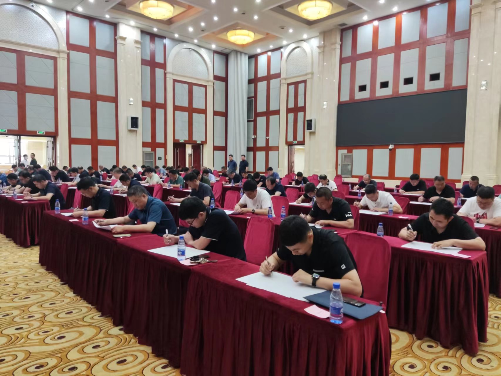 为提升煤矿管理人员业务素质和工作能力,检验对《煤矿重大事故隐患判定标准》学习效果,8月22日,公司组织开展煤矿管理人员《煤矿重大事故隐患判定标准》考试。公司党委副书记卢新军,党委委员、副总经理刘金祥到考试现场督导。