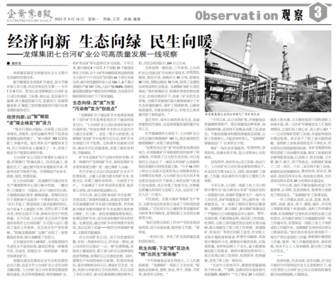 经济向新 生态向绿 民生向暖 ——beat365官方网站七台河矿业公司高质量发展一线观察