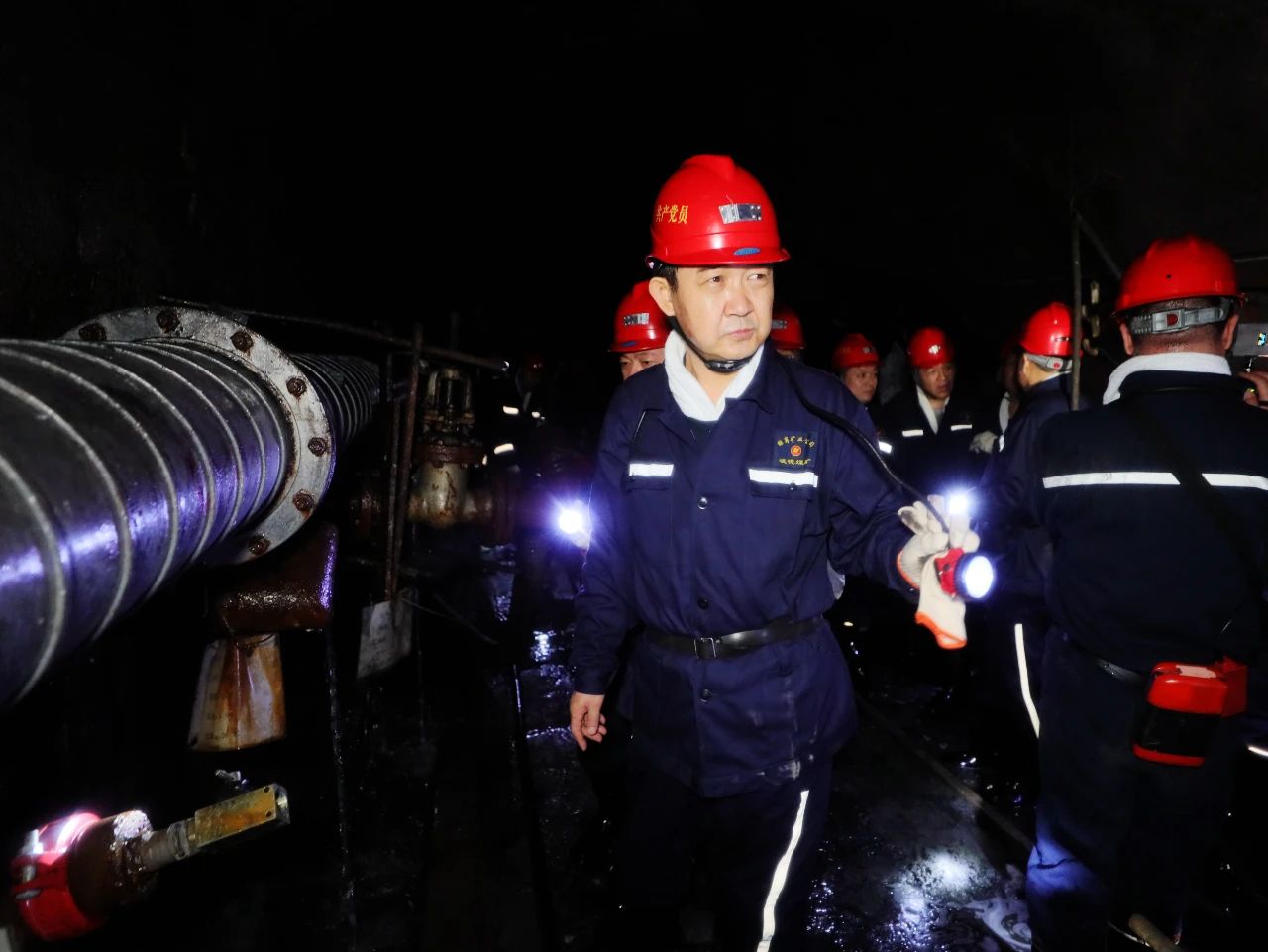 在峻德矿三水平南一区17区二段消火道,刘鹏飞详细查看抽采钻场布置、抽采效果、消火钻孔施工及使用情况。刘鹏飞指出,要根据现场实际情况科学确定消火钻孔的位置,确保每一个钻孔都能发挥应有的作用。要保持消火道通行顺畅,确保各种物资及时运送到位。要加强管线的管理,保证安装质量,确保充分发挥作用。要加强现场管理,按照既定的工作措施,明确责任人,做好各工序之间的衔接,持续夯实安全生产基础。