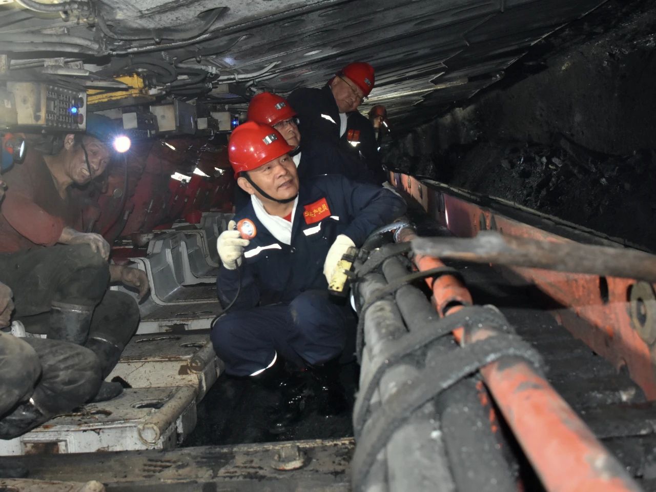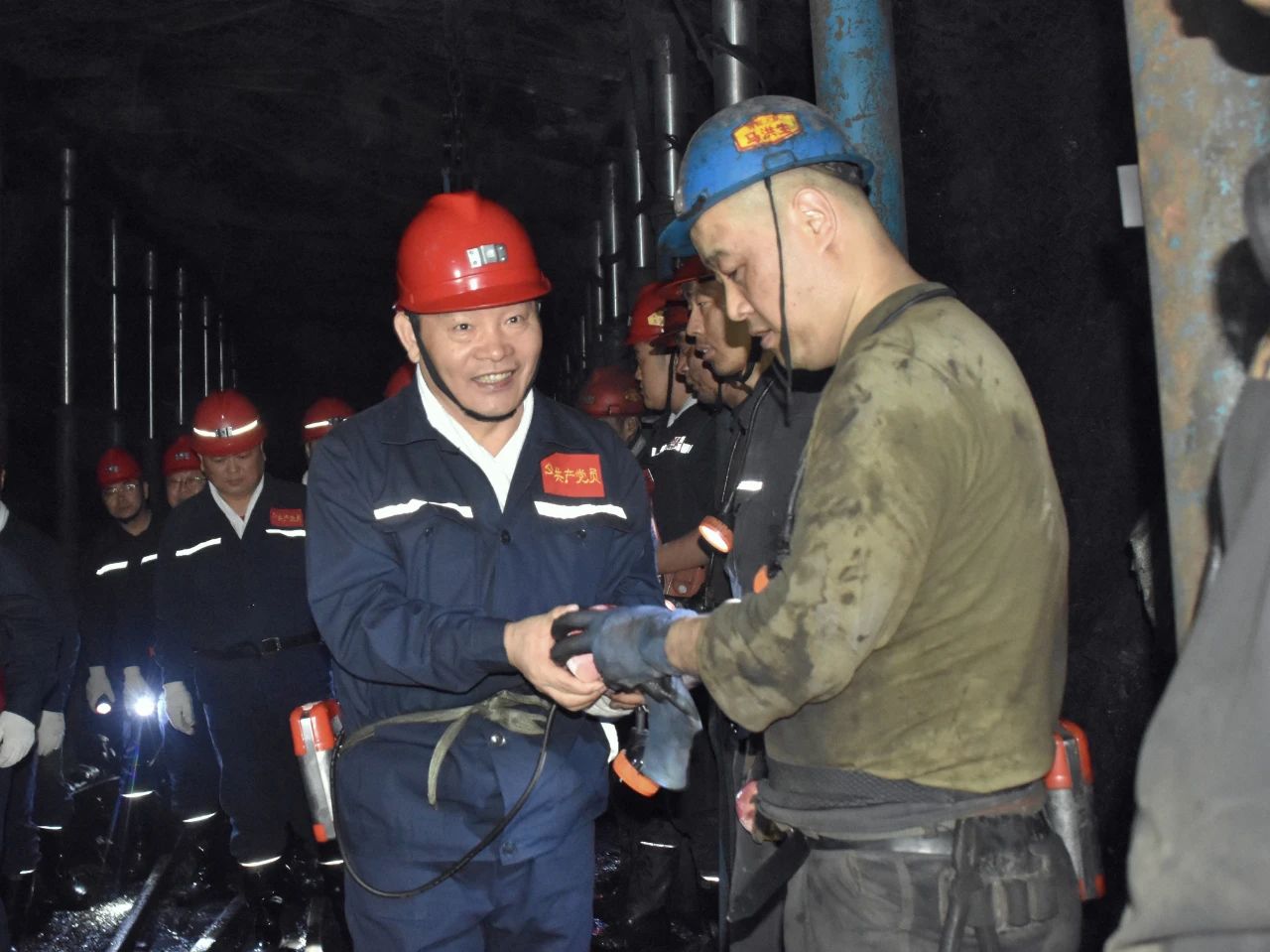 在145智能综采队工作面,王佳喜代表集团公司党委、集团公司向节日期间坚守工作岗位的广大干部职工致以节日的问候和美好祝福,王佳喜叮嘱他们,要始终把安全放在首位,时刻紧绷安全弦,扛起安全责任,筑牢安全防线,以饱满的精神状态为矿井安全生产贡献力量。