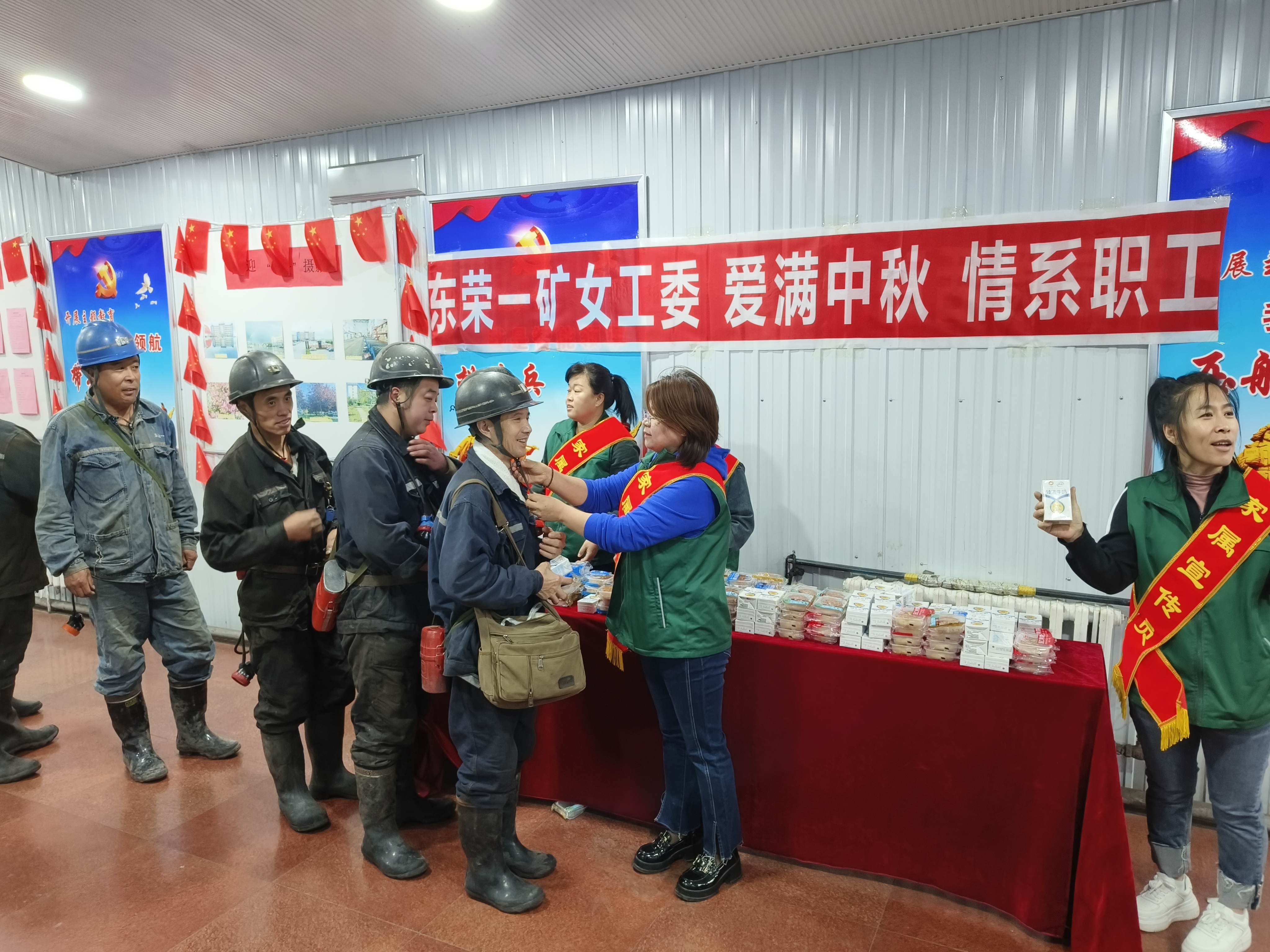 中秋节期间,在井口工作站的金牌家属、安全协管员身披绶带,带着饱含亲情的大礼包,向节日出勤、奋战在千尺井下的一线干部职工送上一份份节日的温情祝福。大家纷纷表示,一定时刻紧绷安全弦,按章操作,上标准岗,干放心活,以饱满的精神状态为矿井安全生产贡献力量。